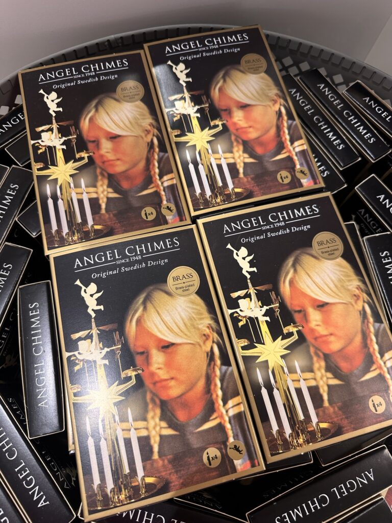 Erik Boberg från Sverige utvecklade slutligen designen 1948 och det är den typen vi ser än idag. Den största som någonsin har gjorts var 8 meter hög, den tillverkade 1995 och stod på Stortorget i Gävle, men efter att ha fått klagomål både på färgen och klangen flyttade det till taket på en byggnad i Valbo. Änglahöjden heter området nu.