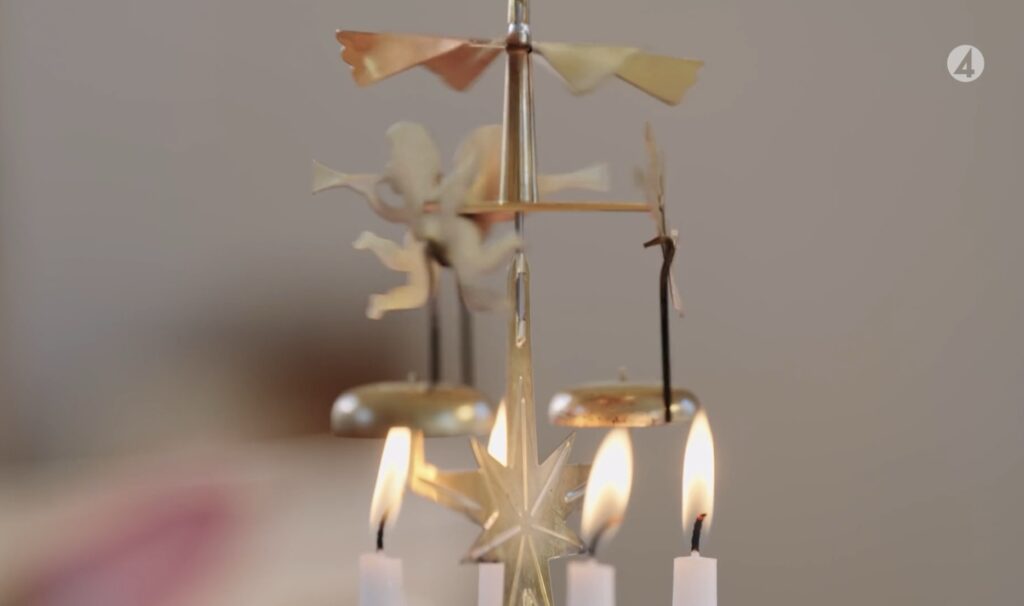 TITTA PÅ JUL MED ERNST! Ja men det är verkligen dagens tips. Jag vet inte vad det är men det är alldeles fantastiskt bra i år. Sprängfyllt av idéer för julen. Jag bara älskar det. Jag får så himla mycket inspiration så det är inte klokt. Idag ska jag göra hans butterkaka, men ska fylla den med pepparkaksfyllning istället. Just här satt han och tittade på änglaspelet, kom då och tänka på att jag har ett men att det saknas en del till den så den snurrar inte. Idag måste jag köpa ett nytt, det är verkligen nostalgi med dessa änglaspel. Änglaspel kan man hitta ända bort till början av 1900 talet. Från början var det en utveckling av den tyska traditionen julpyramiderna. Då på den tiden gjordes de i tenn och var långt mycket mer utvecklade än nu med massa kringelikrokar och grejer.