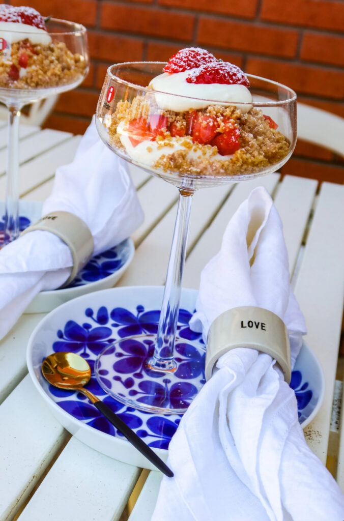 Dessa ljuvliga fat från Mon Amie (<klicka) är det jättekampanj på just nu. Använder dem så mycket, som här som ett fat att ha under desserten – så mycket finare när man dukar. Som frukostfat, som dessertost, som förrättstsallrikar m.m. Receptet på denna Cheesecakeglass hittar du HÄR.
