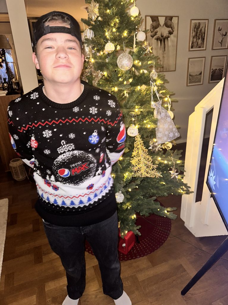 Med jultröjan på på väg till skolan för sin sista dag, ja det fick bli dagens julpynt! Finare julpynt kan man inte hitta. Efter en riktigt tuff termin, han har kämpat hårt med prov, läxor och nationella prov, så är han så väl värd lite vila från skolan nu. Så oerhört stolt över denna killen!