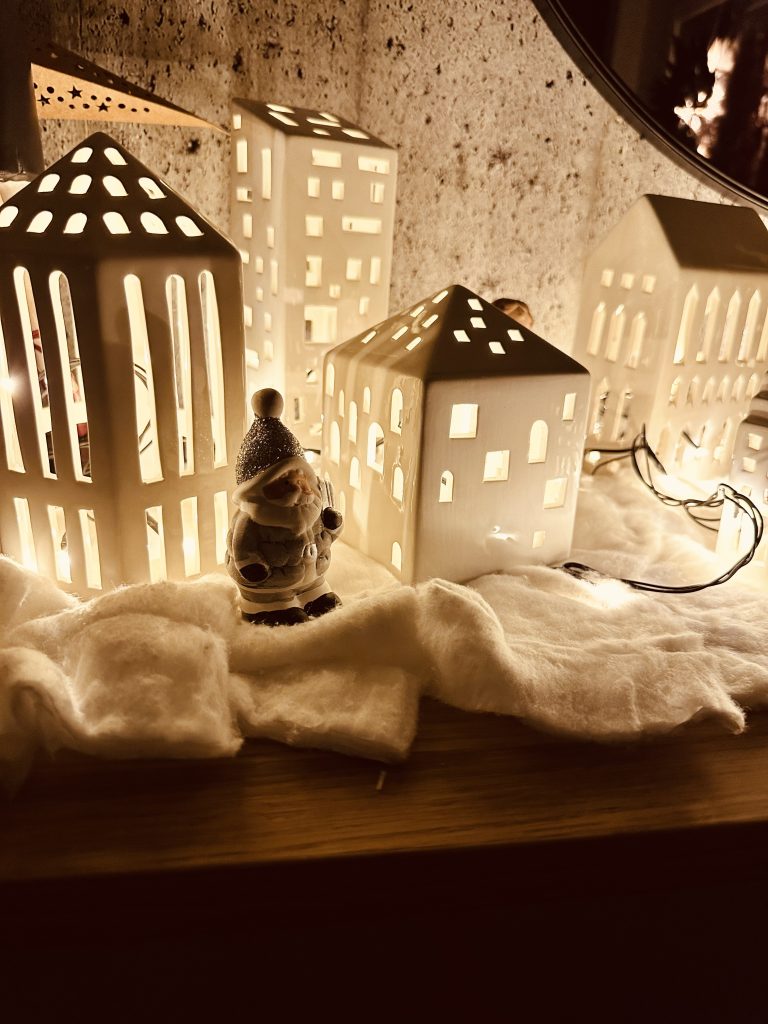 Det har ”snöat” vid mina ljushus (<klicka – kampanj på dessa) och tomtarna har flyttat in. Nu kan det bli jul på riktigt. 🎅🏼