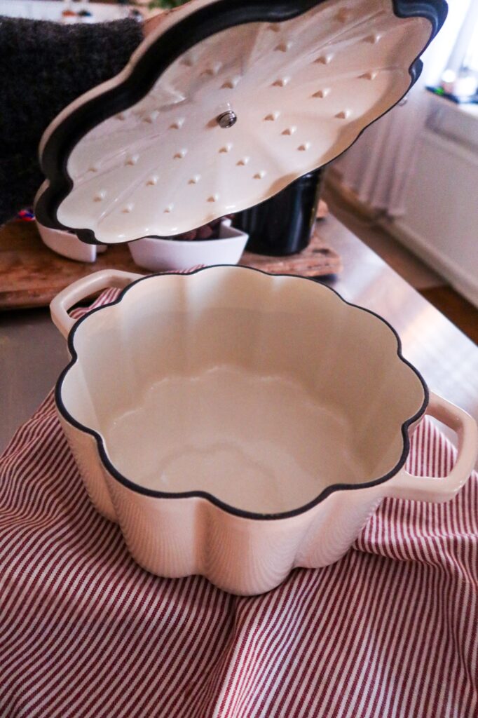 Kolla in denna vackra skapelse, min nya gjutjärnsgryta. Nej men jag är så upp över öronen förälskad i den här ljuvliga. Kan bara stå och titta på den, jag vet att jag är en rejäl nörd när det kommer till köksprodukter. Men är den inte vacker? Kan med varm hand rekommendera den här fina fina gjutjärnsgrytan som garanterat kommer vara höjdpunkten på middagen om den placeras på matbordet, en sån man absolut inte skäms för att ställa fram heller!