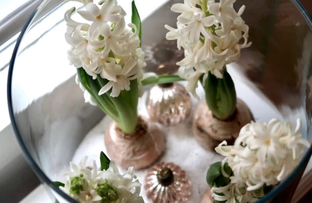 Hur många hyacinter kommer man hinna ha innan självaste julafton? För mig är hyacint en av julens vackraste och härligaste blommor. Det här julpysslet ordnar du enkelt. En glascylinder, vit sand, några julkulor och hyacinter. Detta pyssel var så mysigt och göra och blir så otroligt fint. Hyacinterna klarar sig otroligt bra, ett tips är att ha de stå svalt nattetid. Ju varmare det är desto snabbare drivs de fram. Även om det finns vatten i hyacinten i sig själv så ska du vattna sanden lite så hyacinten orkar blomma ut alla blommor.