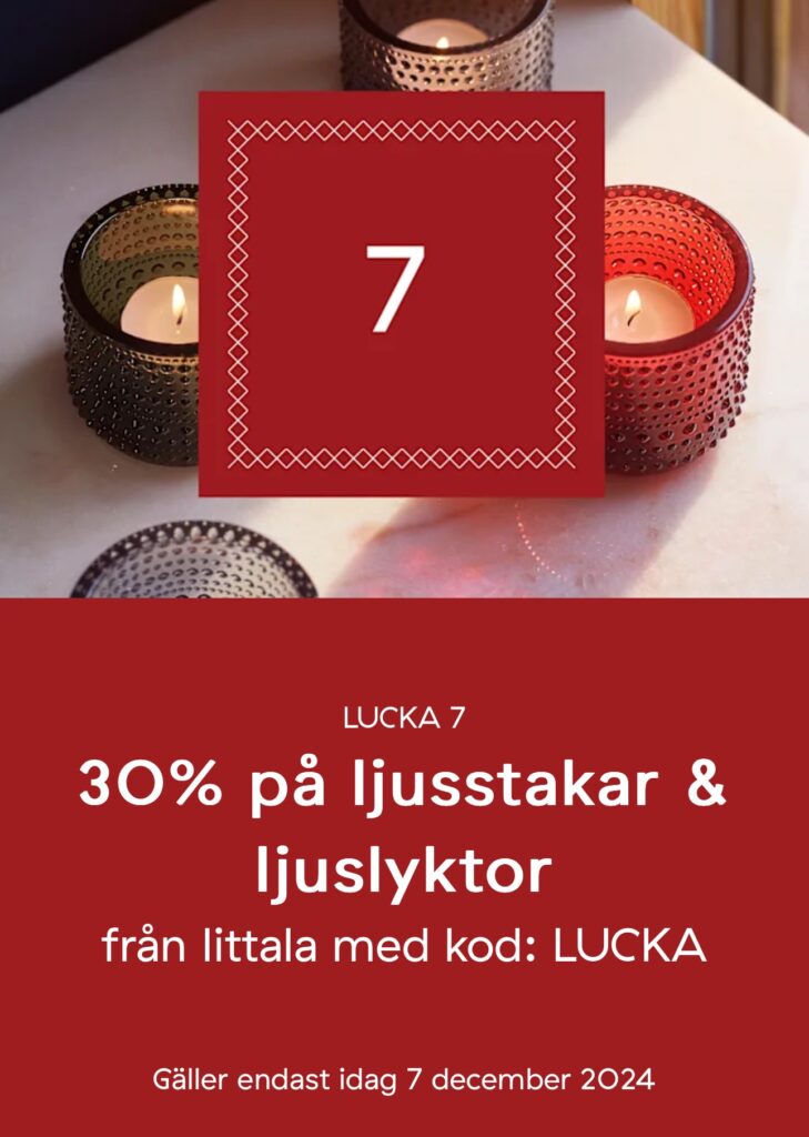 Dessutom har du 33% rabatt på dyraste varav och 5% extra rabatt på redan besatta med rabattkod: NIIINISDEC24.