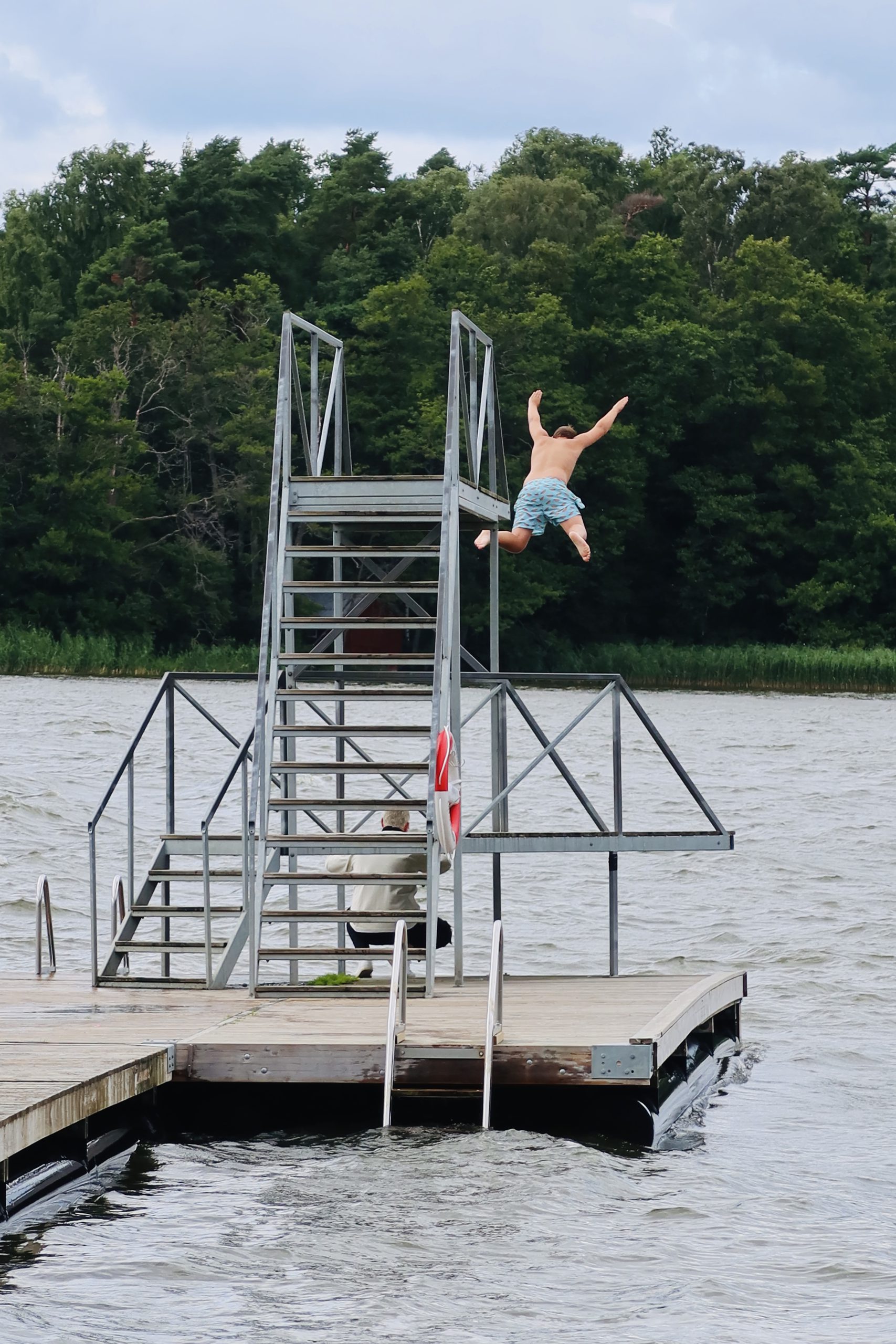 Efter lunchen som pågick i några timmar ville Milo åka o bada. Han den lille galningen gjorde ”räkan” eller ”death-dive” som det kallas också från högsta i hopptornet. Ni vet ju min rädsla för vatten…ja nääää, jag vet inte alls så förtjust kan jag säga. Dessutom blåste det huggormarnas huggormar ute på udden där vi var. Men jag var inbäddad i filtar bakom parasollet med varmt te med mig så mig var det inge synd om. Tony fotade milo för fullt, kika gärna in hans fotosida på Instagram, den bilden han tog igår blev rätt häftig! HÄR hittar ni hans fotoinstagram.