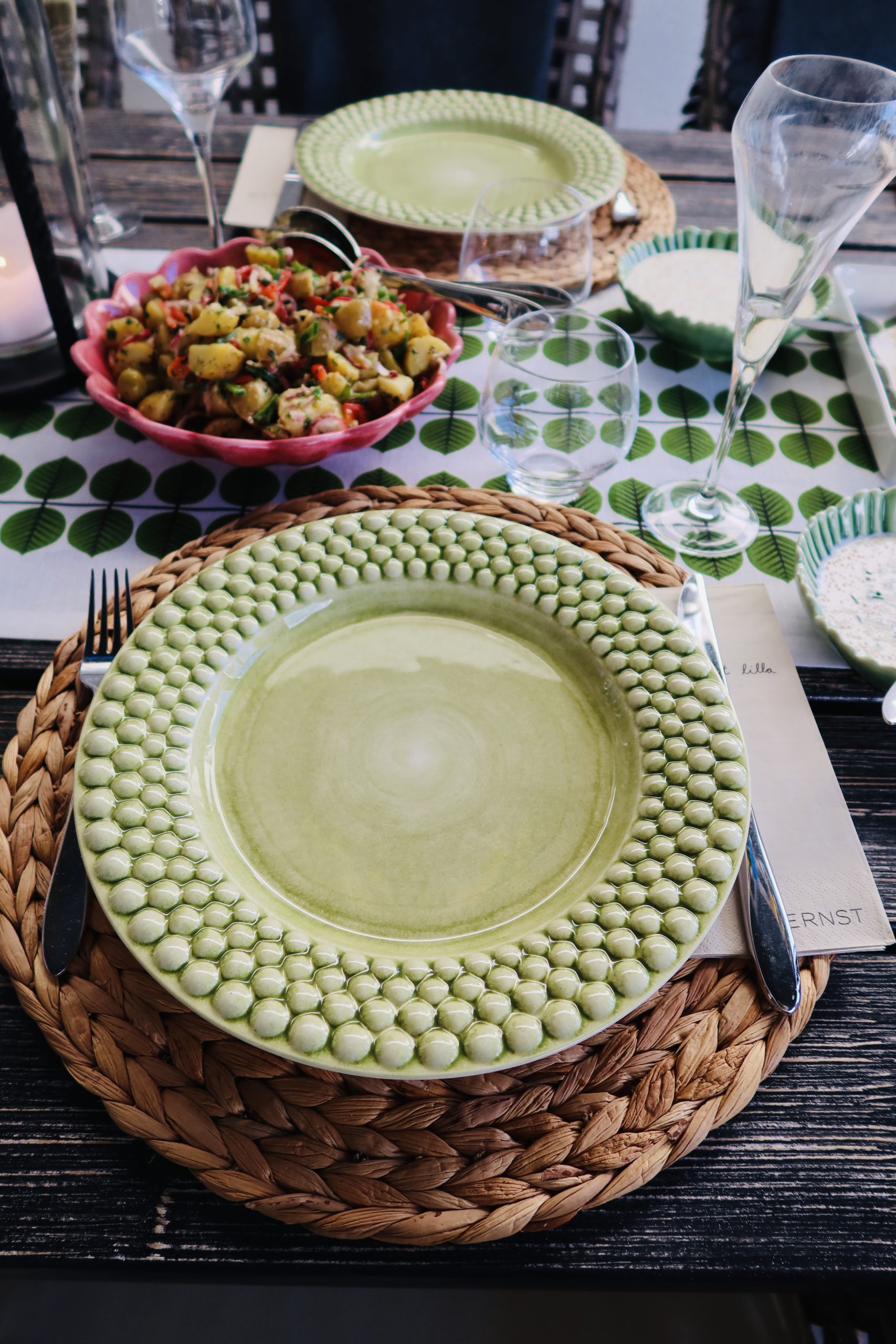 Saras gröna tallrikar är från Mateus och finns HÄR // oysterskål rosa HÄR // oysterskål grön HÄR // Ernst servetter HÄR.
