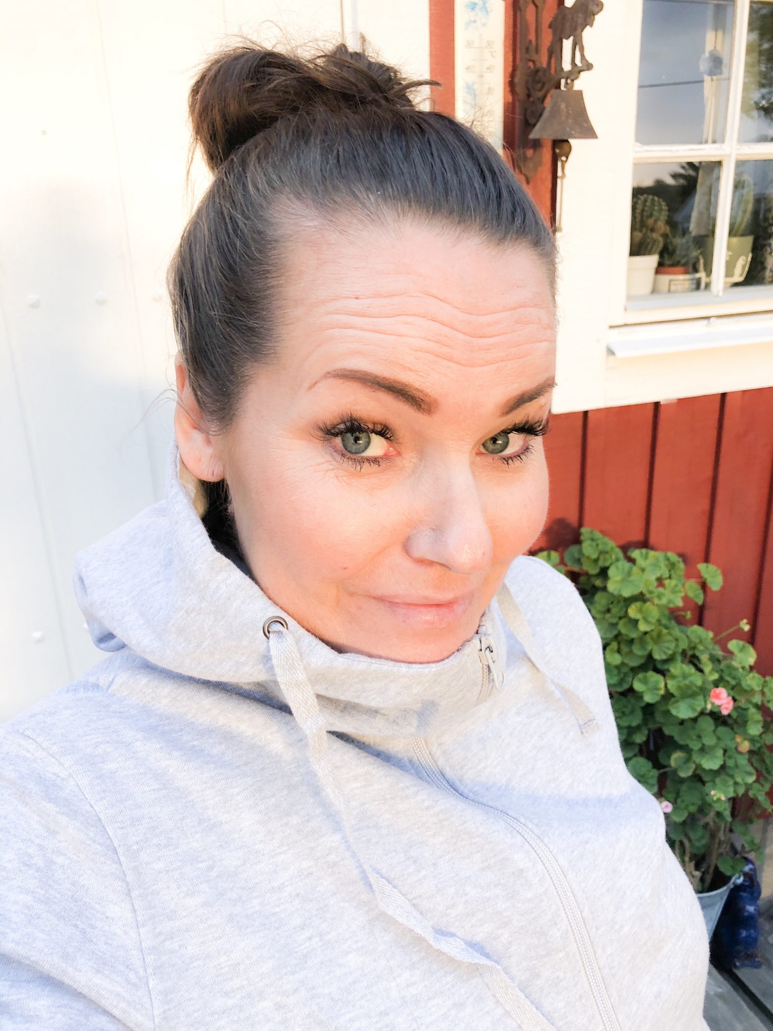 Det blev att hoppa i muuuuuskläderna så fort vi kom hem. Hur kan man gå i jeans hemma? Gör du det? Den här luvtröjan är världens skönaste plagg. Hög hals med luva och så älskar jag den fina blomman på ärmen, finns i flera färger.