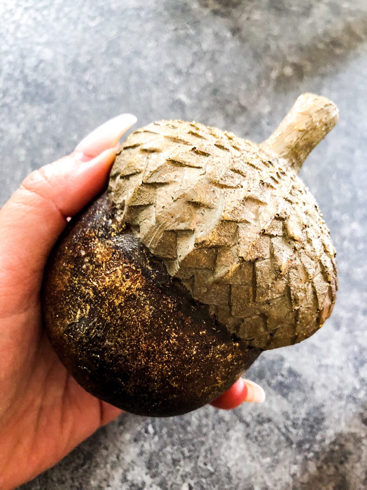 Hittade det här urfina ekollonet också, den var bara tvungen att följa med hem. Måste åka ut och köpa fler, ångrar jag inte gjorde det igår…. ett ekollon i guld räcker ju inte.