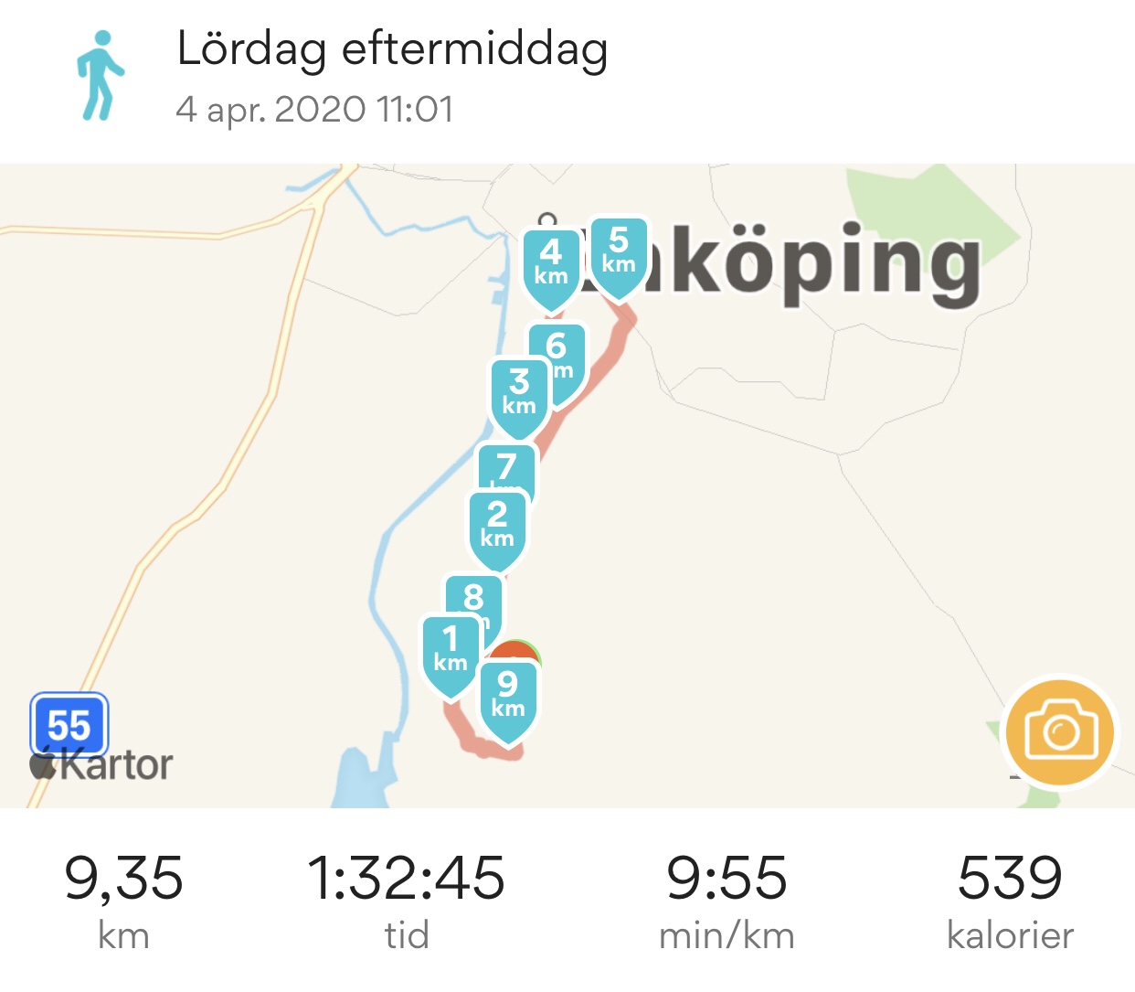 Gårdagens promenad blev en extra lång rackare. Såå skönt! Vi hann och prata om precis allt på promenaden samtidigt som man fick andas in det fina vädret och få motion. Är det något man kan skaffa sig extra av nu så är det motion. Blev en 1,5 timmas lång promenad på 9,3 kilometer. Den ska vi ta ett par gånger i veckan nu bestämde vi, resten får bli den som är på ca 45 min. Det är bra med variation!