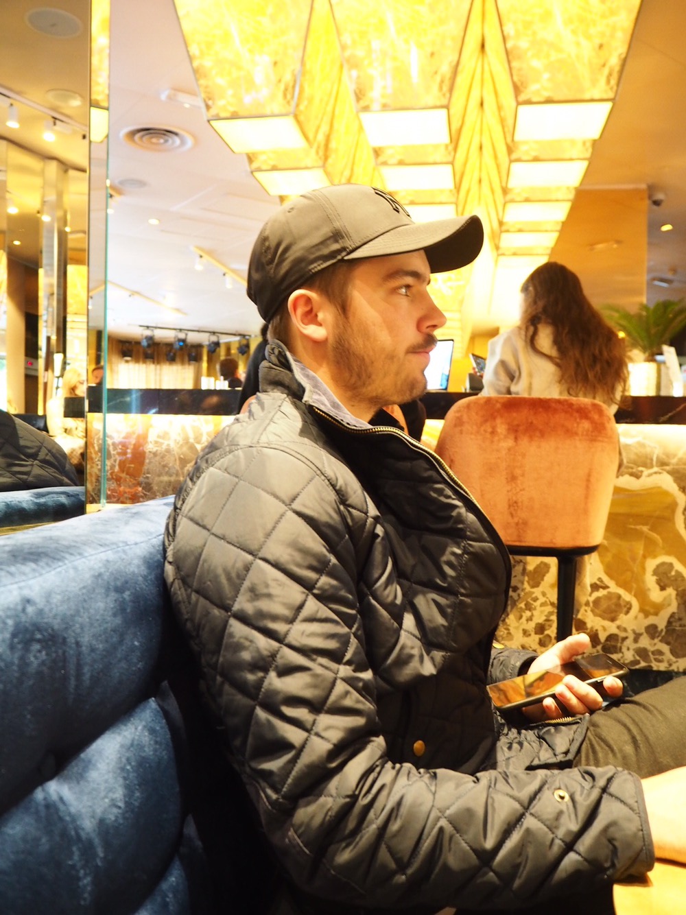 I parkeringsgaraget hann vi med en ”dab” innan det var dags att ge sig av mot restaurangen.