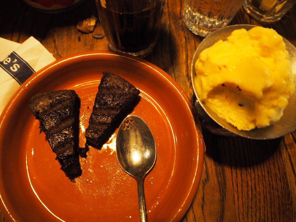 Till efterrätt njöt jag av en magisk glutenfri chokladkaka med exotisk sorbe. Rensade tallriken ytterligare en gång.