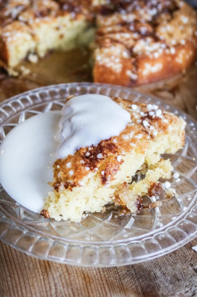 Igår bakade jag ju en kaka som vi ska bjuda mina svärisar på när de kommer och hälsar på. Ojoj, vilken kaka. Den här måste du prova verkligen! Det är en kaka du bakar i långpanna. En mjuk saftig kaka med lite crunchig ripping uppepå kakan som under gräddningen liksom borrar sig in i själva kakan. Helt fantastisk, denna ska jag baka fler gånger, det är en sak som är säker!