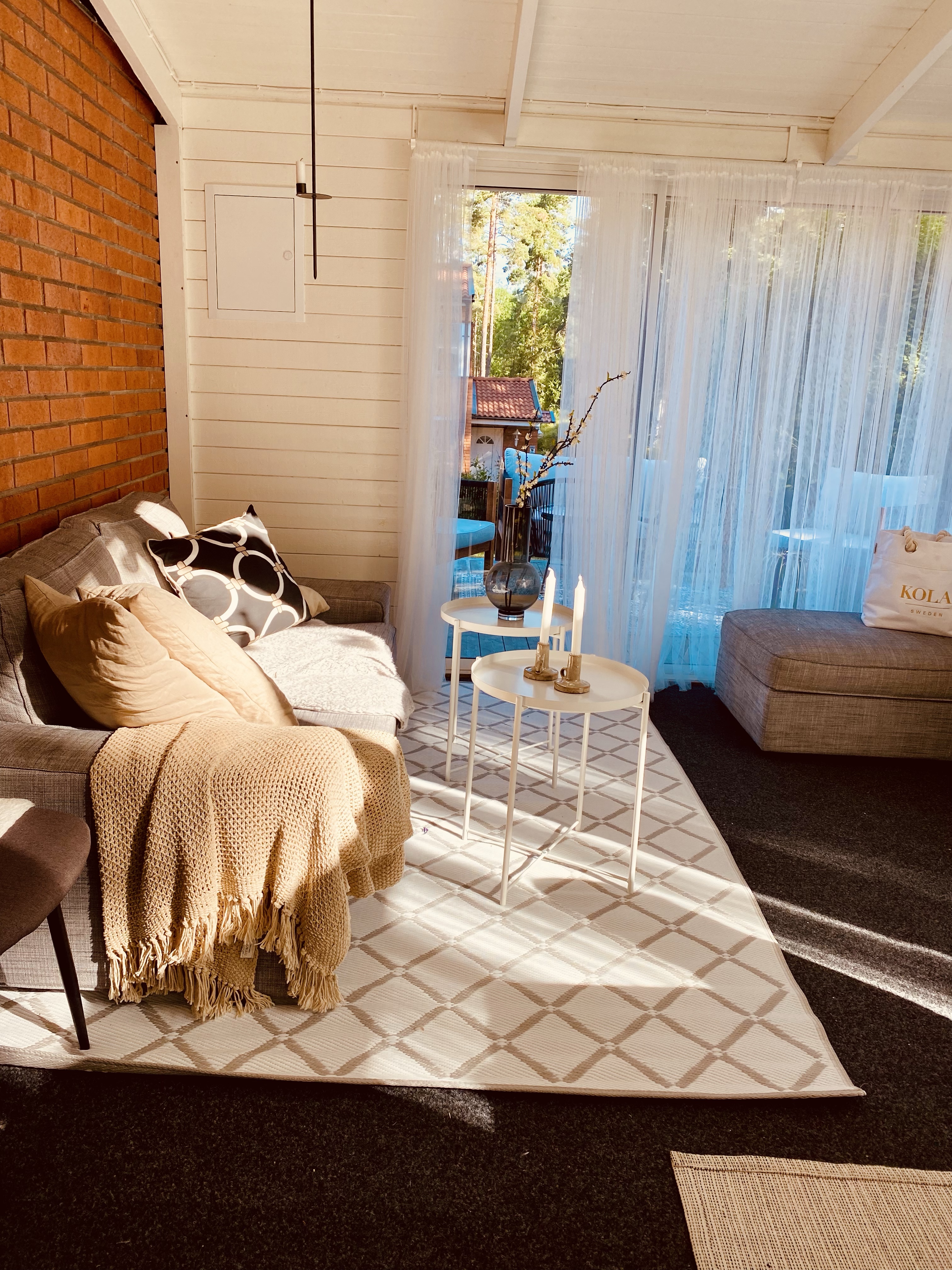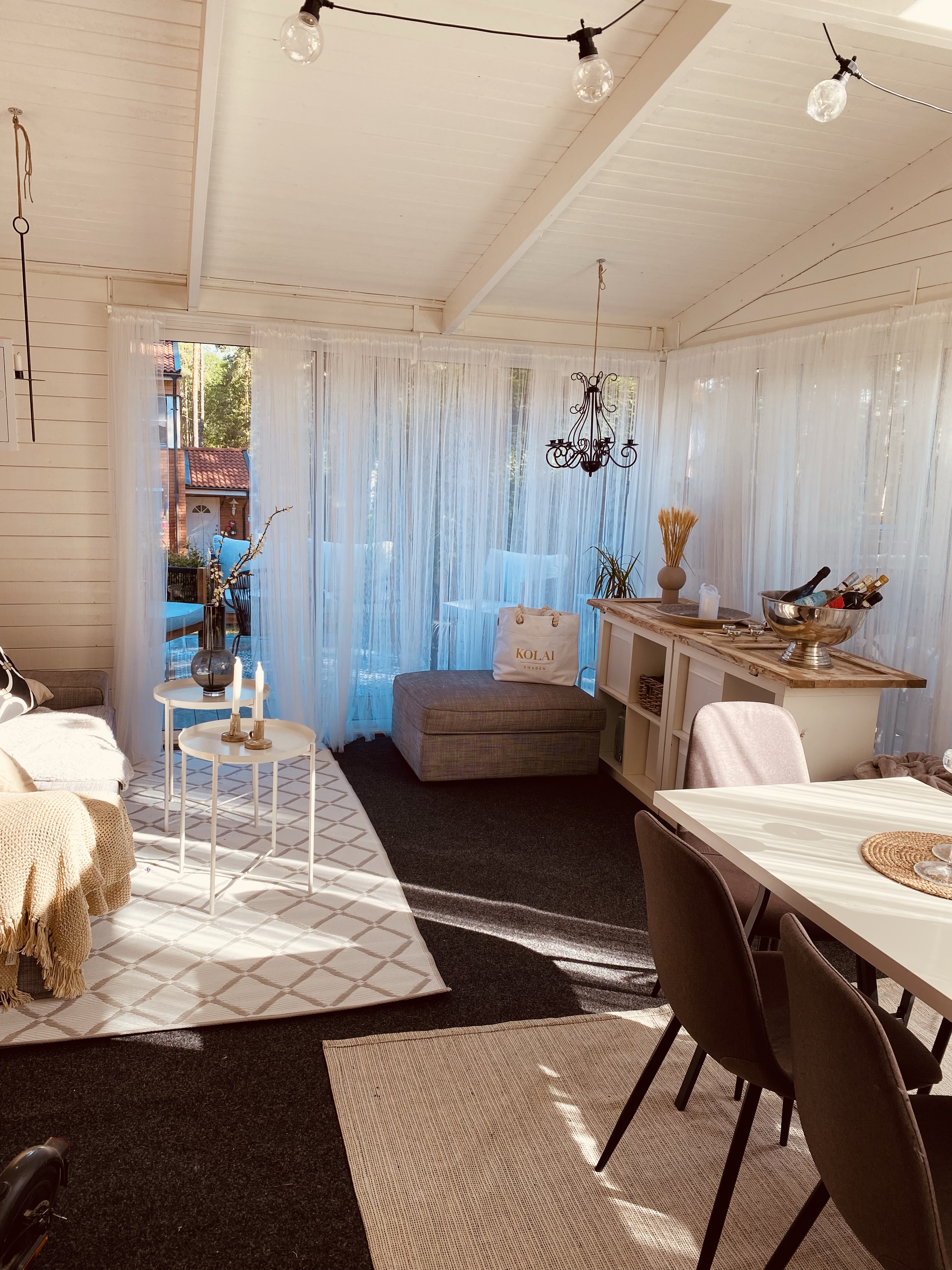 Åh, det finns en stund på morgonen som är så magisk så det är svårt att förklara. Det är på morgonen precis när solen börjar bryta igenom, det är sådär tyst och lugnt fortfarande, man hör allt så ingående. Fåglarna som kvittrar, suset i träden, en dörr som öppnas eller en cykel som susar förbi. Alla de där ljuden som inte hörs när dagens sorl vaknat. Exakt den lugna stunden fotade jag i vårt uterum, det är något så speciellt med just den stunden och jag älskar den verkligen.