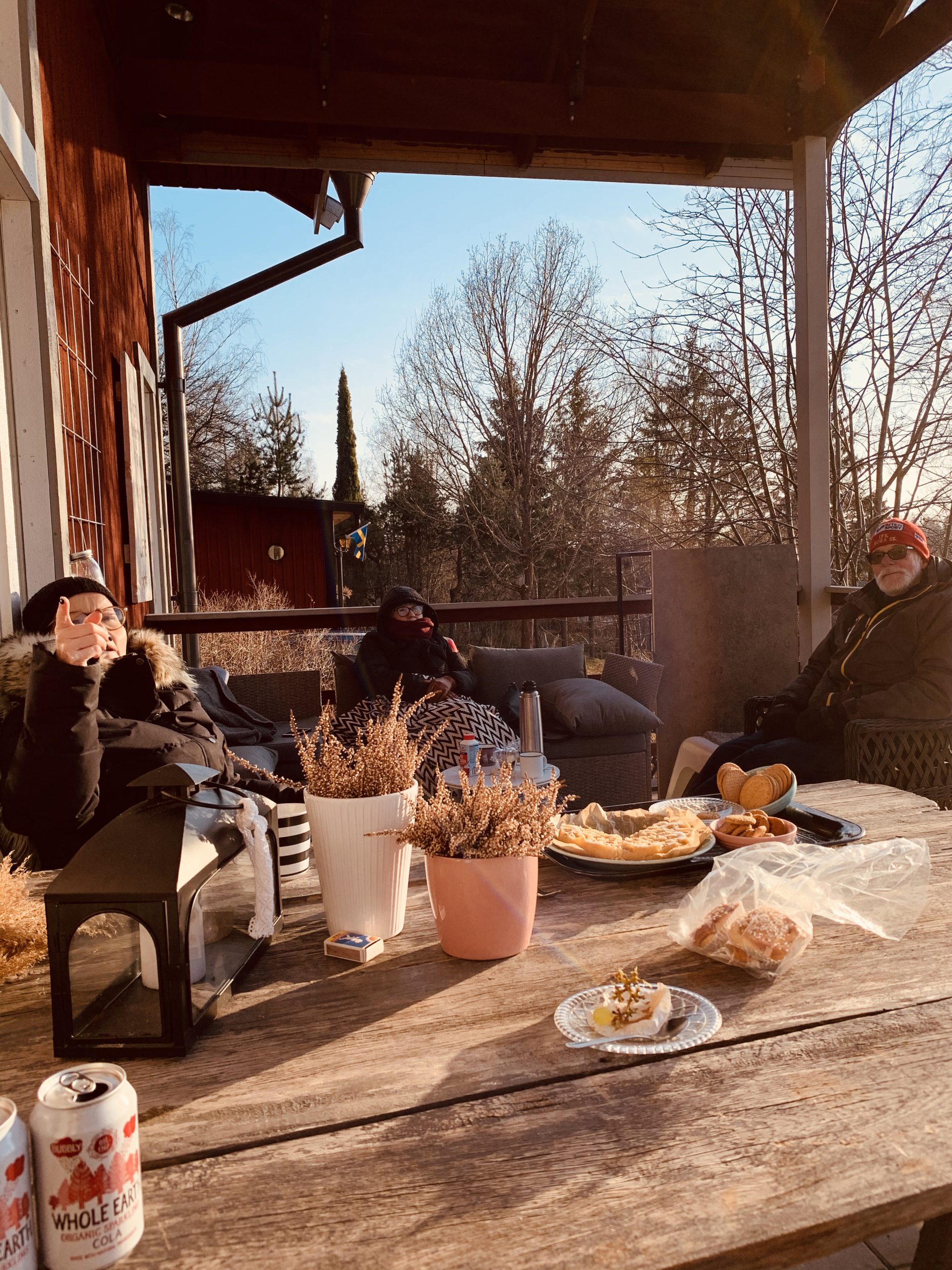Mamma och pappa är inte 70 ännu men vi är rädda om dem och tar det säkra före det osäkra. Såå mysigt att sitta och få prata och umgås, får se om vi får ihop en grillning i helgen också? Längtar till det blir varmare!