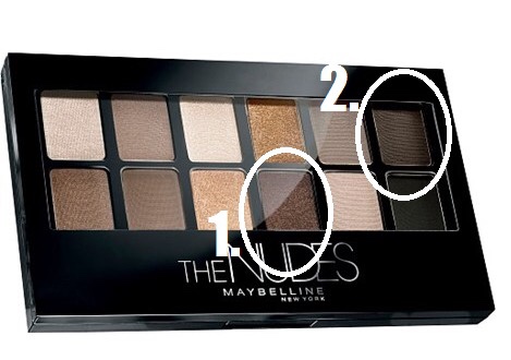 Deras ögonskuggepalette The Nudes är verkligen jättefin och har bra pigment. Användbara färger som håller bra. Till sminkningen ovan har jag kört en sotning med dessa två bruna skuggor. Den ena är (nr: 2) är matt och den andra (nr:1) är det pärlemor i. Nr 2 har jag kört i globlinjen (linjen där ögonlocket veckar sig när du öppnar ögat) och nr: 2 på själva locket. Sen tar man en ren fluffig pensel och tonar ut kanterna, det är inte så svårt som man kanske tror.