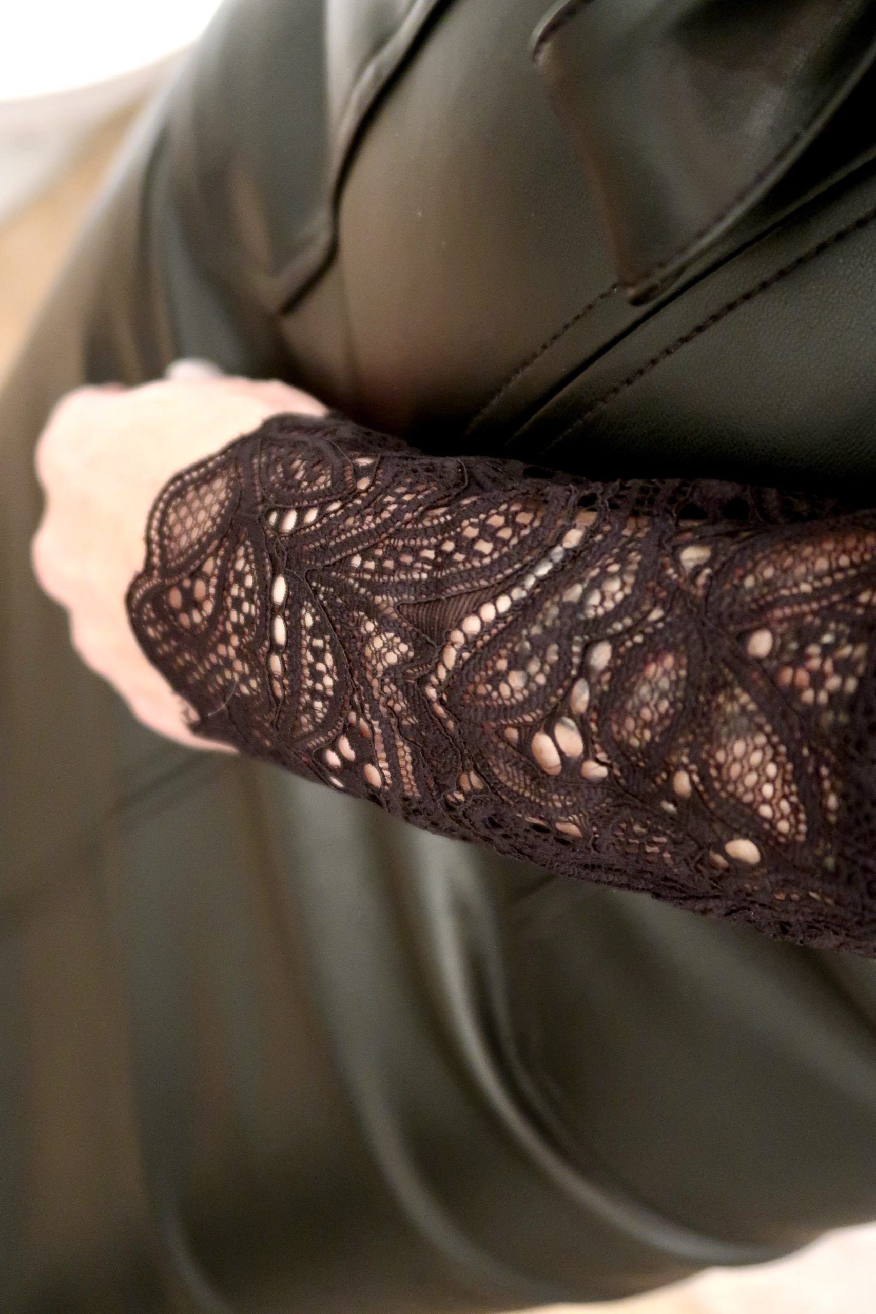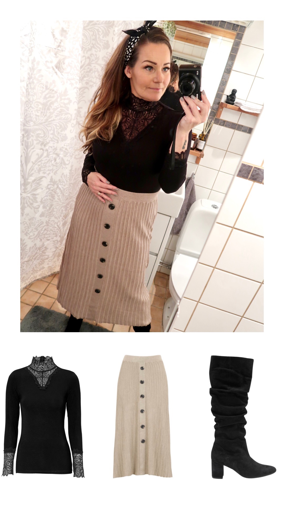Kjol i skinnimitation // Topp med spetsdetaljer //Stövlar