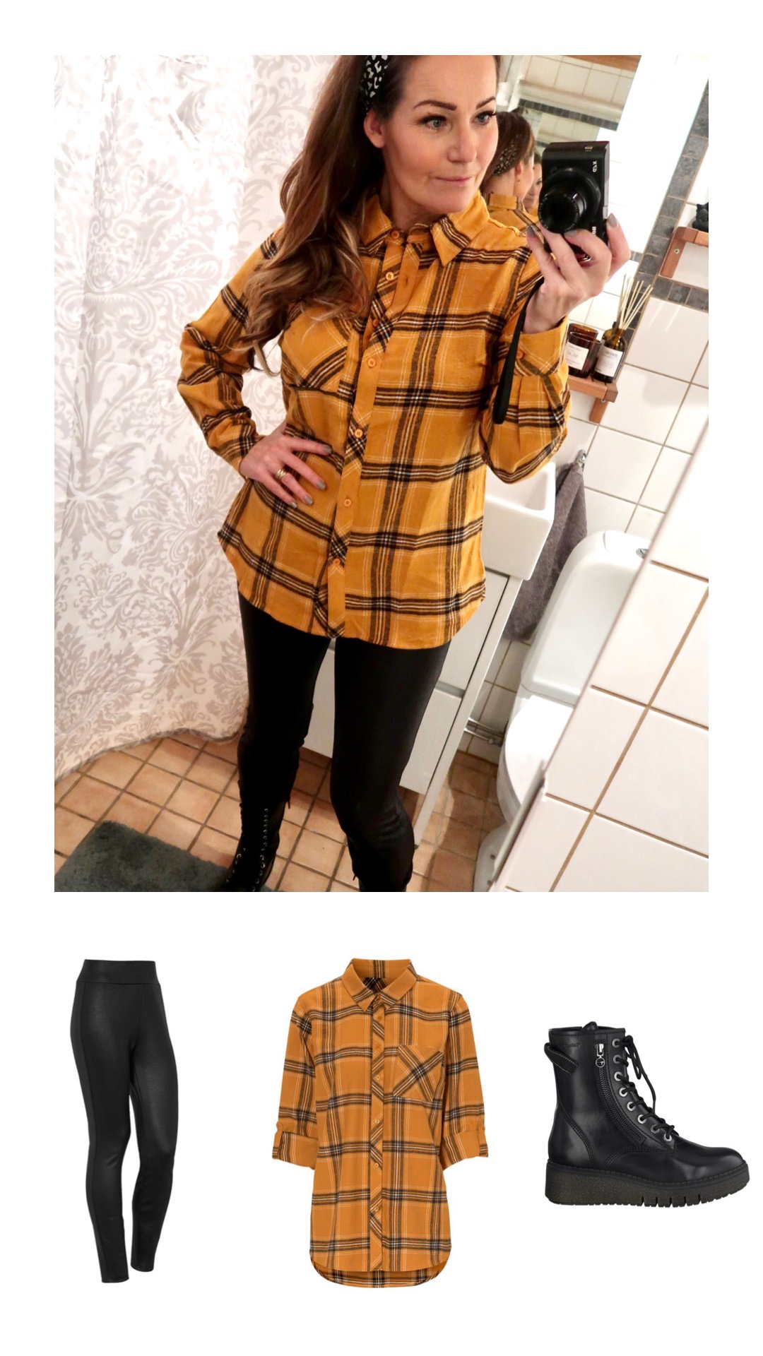 Skjorta // Leggings skinnimitation med bred midja // Kängor (liknande)