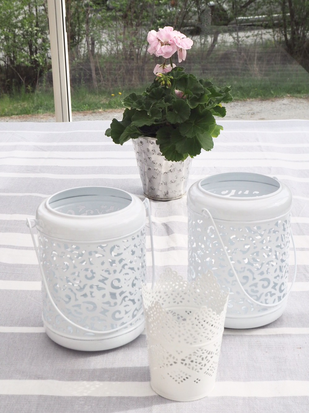 I uterummet har vi ju ett stort matbord som vi byggt själva, istället för att måla det så köpte jag en stora ljuslyktorna.