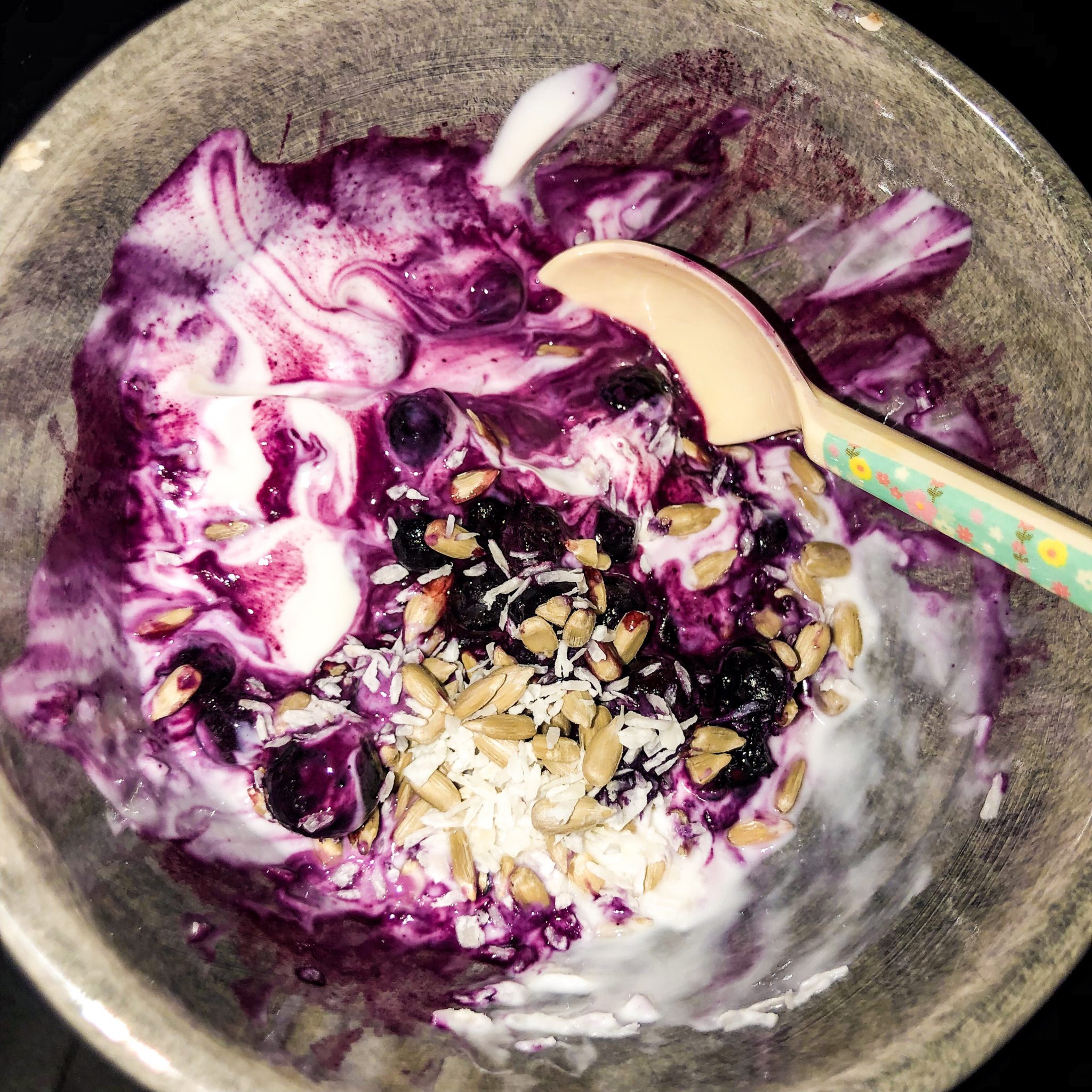 I morse blev det grekisk yoghurt med blåbär, solrosfrön och kokos. Idag kör jag igång lite hälsosammare. Ska verkligen försöka vara lite mer hälsosammare i veckorna för att ha lite cheat-day på lördagar. Jag mår så mycket bättre när jag inte äter ”skit” under veckorna och behöver verkligen ändra mina vanor. Vill du hänga med så kan jag kanske dela med mig av lite hälsosammare tips, klicka i hjärtat eller kommentera om du också är intresserad!