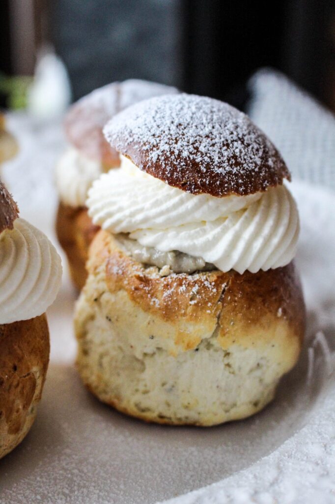 Semla med mandelfri mandelmassa. Jag säger bara tammetusan alltså, det smakar som mandelmassa men den är mandelfri. Så gott alltså! Det här receptet gjorde jag 2018 första gången och jag minns hur chockad jag var att min glutenfria semla smakade mandelmassa. Jag som då var allergisk mot mandel hade slutat drömma om semlor på klassiskt vis för längesen. Tills jag sprang på ett recept med mandelfri mandelmassa. Testade mig fram och till slut så blev detta receptet till. Att få njuta av en glutenfri semla med mandelfri mandelmassa var en dröm som blivit sann. Efter att ha druckit sellerijuice nu i 5,5 år har jag blivit fri från nästan alla mina allergier, inklusive mandelallergi så idag kan jag äta en klassisk semla igen. Men till dig som söker mandelfri mandelmassa, här har du världens bästa recept!