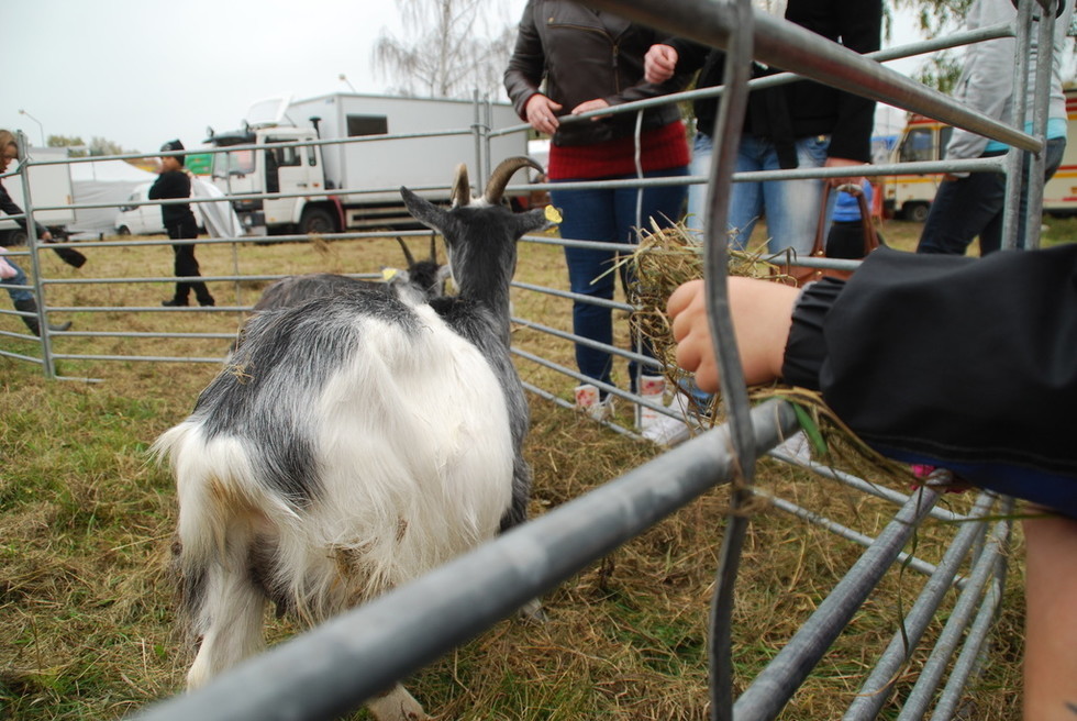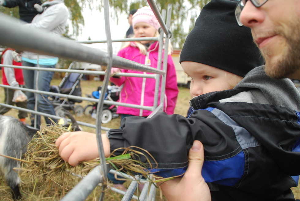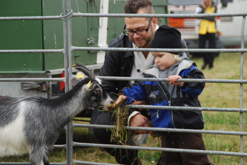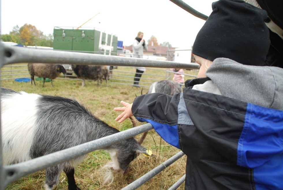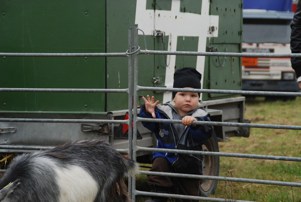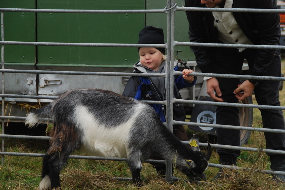 Väl framme på marknaden så hade det fixats ett litet minizoo till barnen. Milo skulle mata getterna här. Ser nästan ut som att Tony håller i hans arm och ba: ”Jooo, nu håller du armen här inne så att den där geten kommer och biter dig” type of thing. Så var det inte, mer tvärtom. Var beredd ifall getfan bits liksom! 🙂 Milo han väntade och väntade…