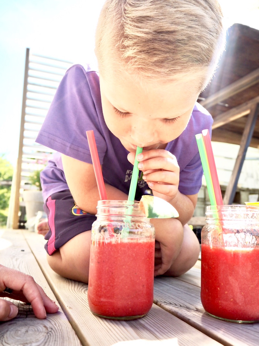 Hörni! Nu måste jag snabbt dela med mig av denna galet goda fräscha dryck, ja innan jag berättar om min hektiska dag. Igår brassade jag i ordning den här till Milo och han slurpande i sig den på två röda. Sååå fräsch verkligen, du måste prova!