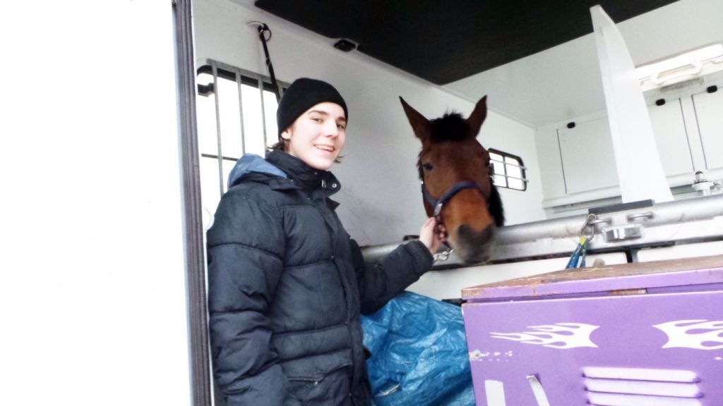 När vi hämtade Sol. Elliots häst som han hade på försäljning hos sig, vi hyrde stallplats och han fick ha sin ”egna häst” i några månader. Så ledsna vi var när hon åkte tillbaka.