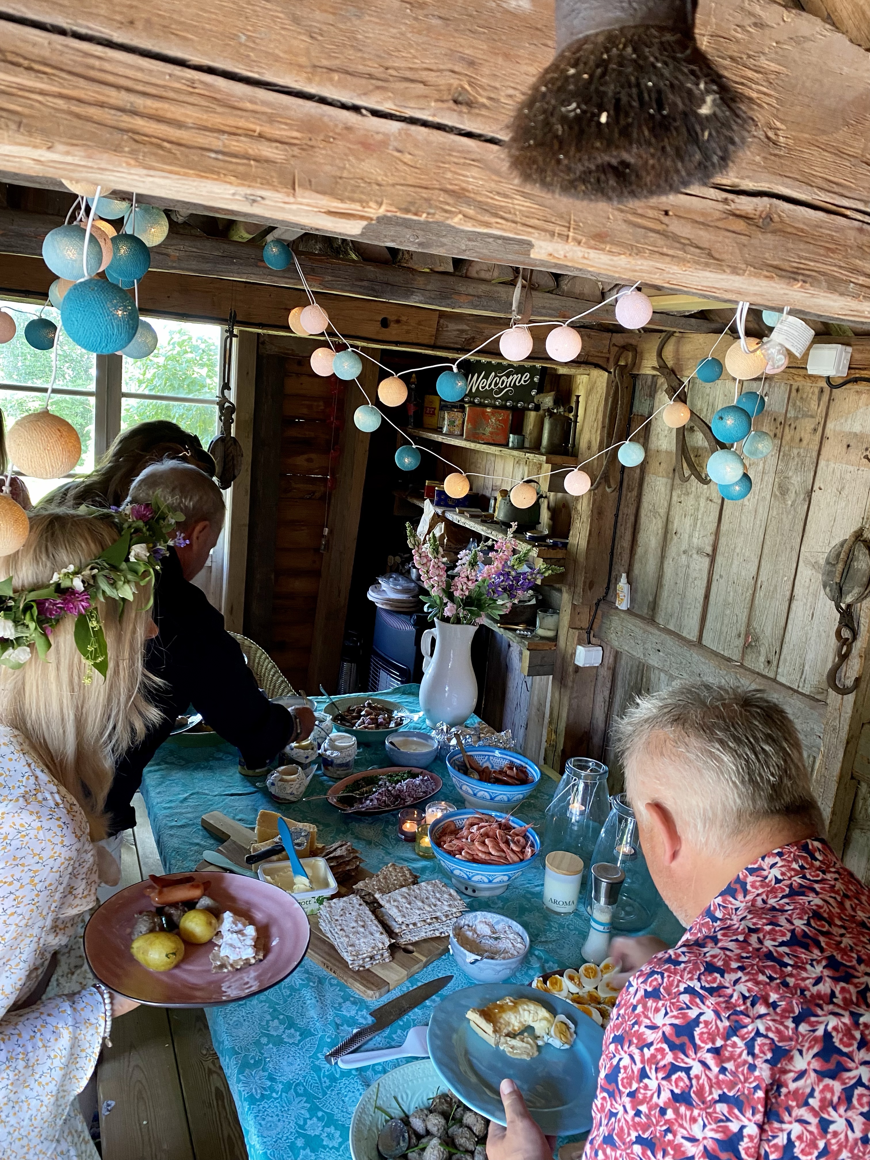 Älskar detta lilla hus nere vid vattnet, där serveras alltid midsommarbuffén.