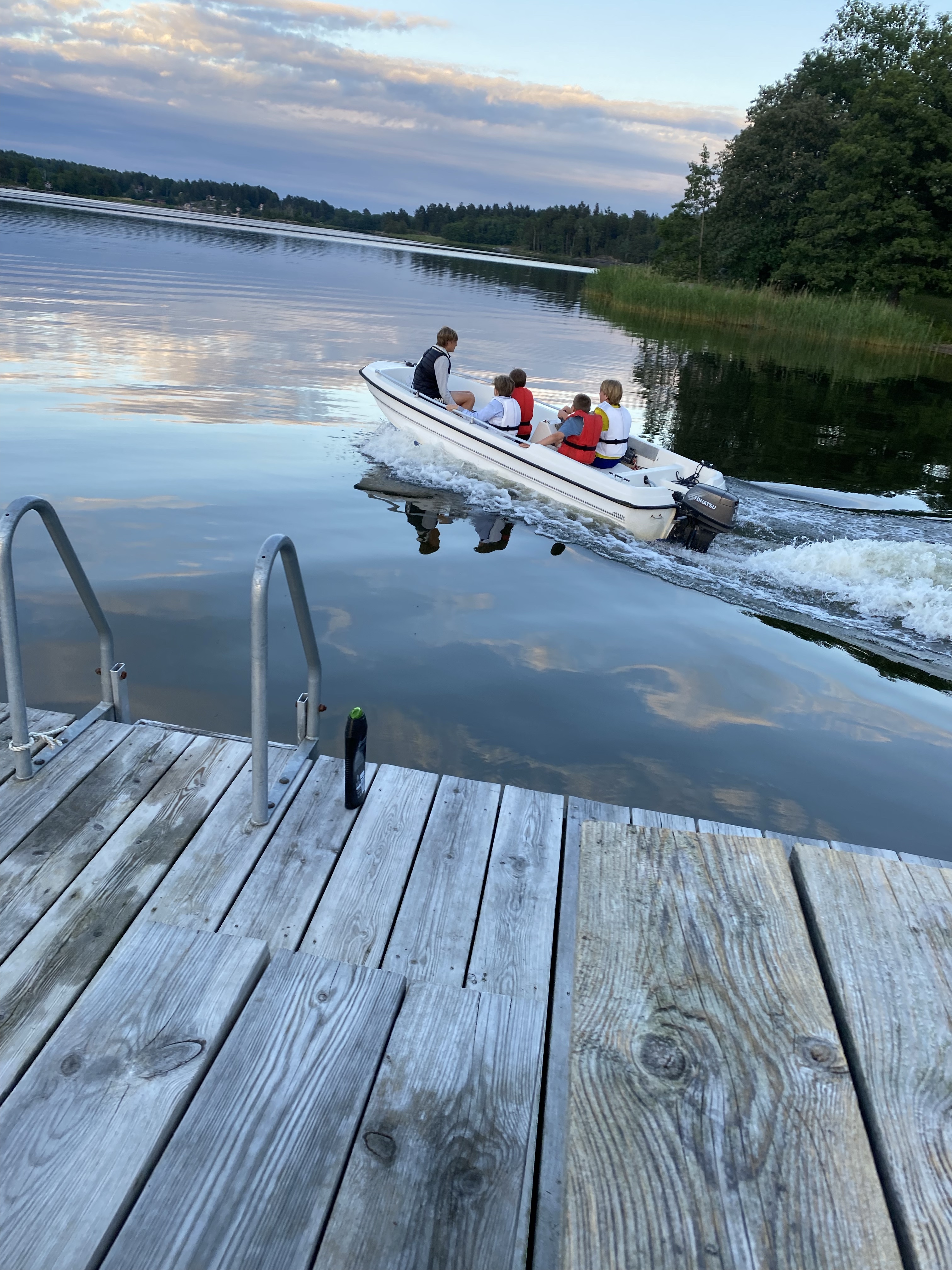 Beppe, Marcus & Terece son har en egen båt som killarna for iväg med. Lugnt vatten och ett gäng killar ut på tur, så härligt ju.