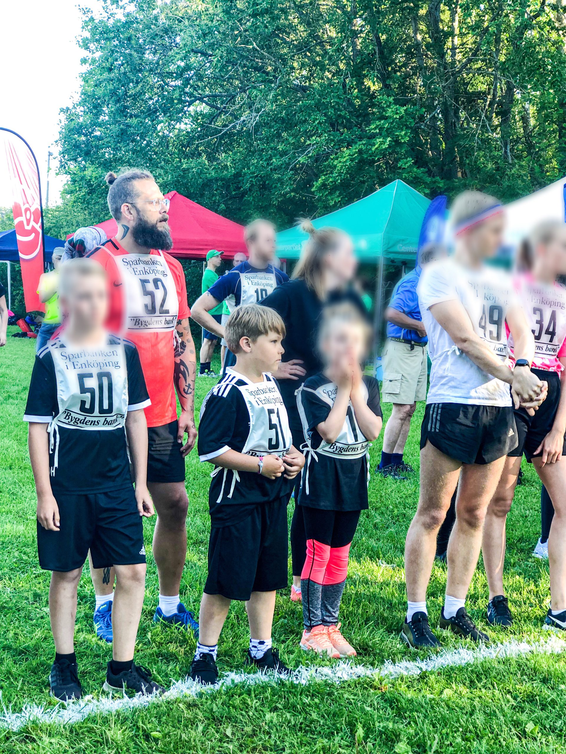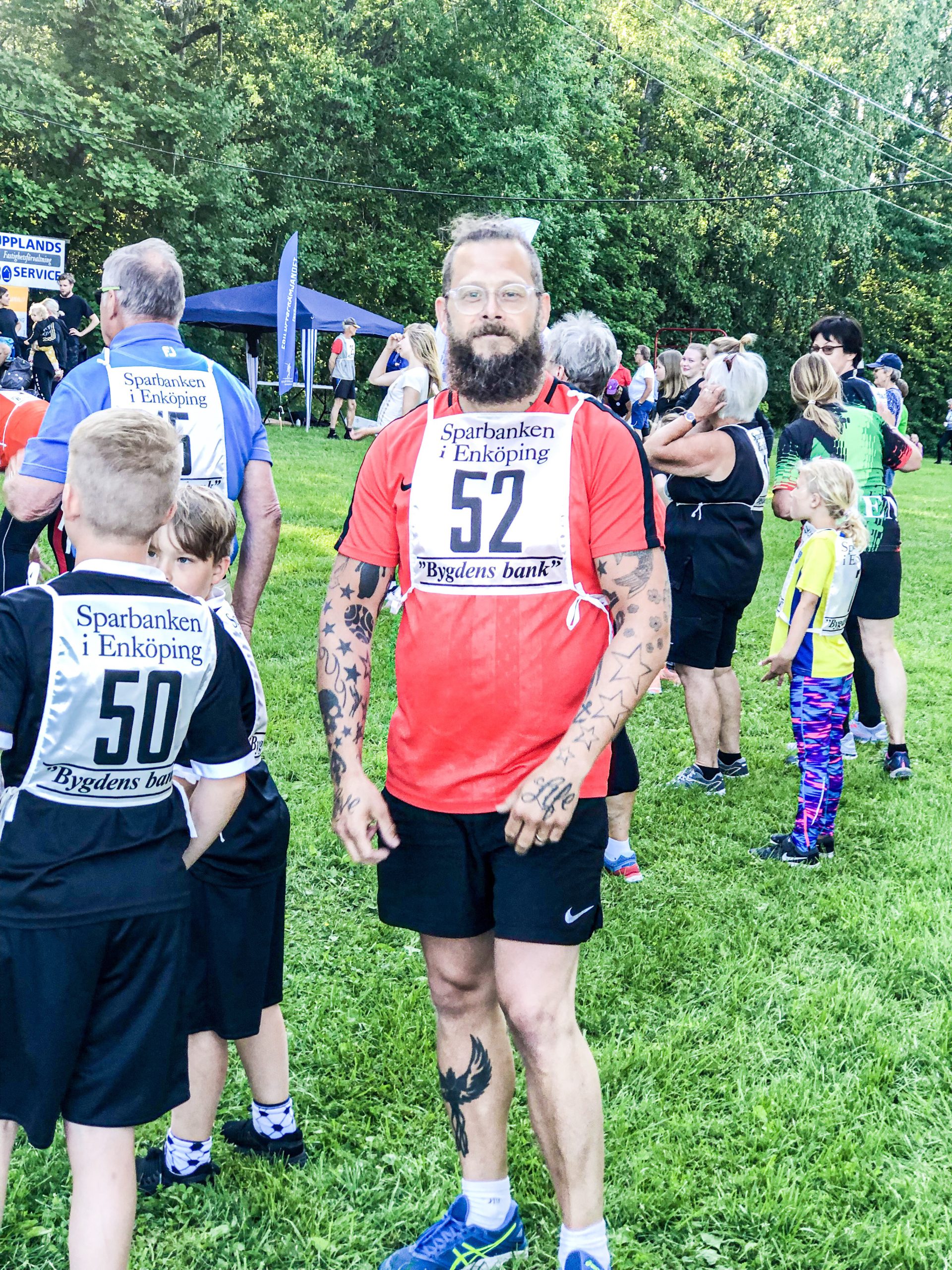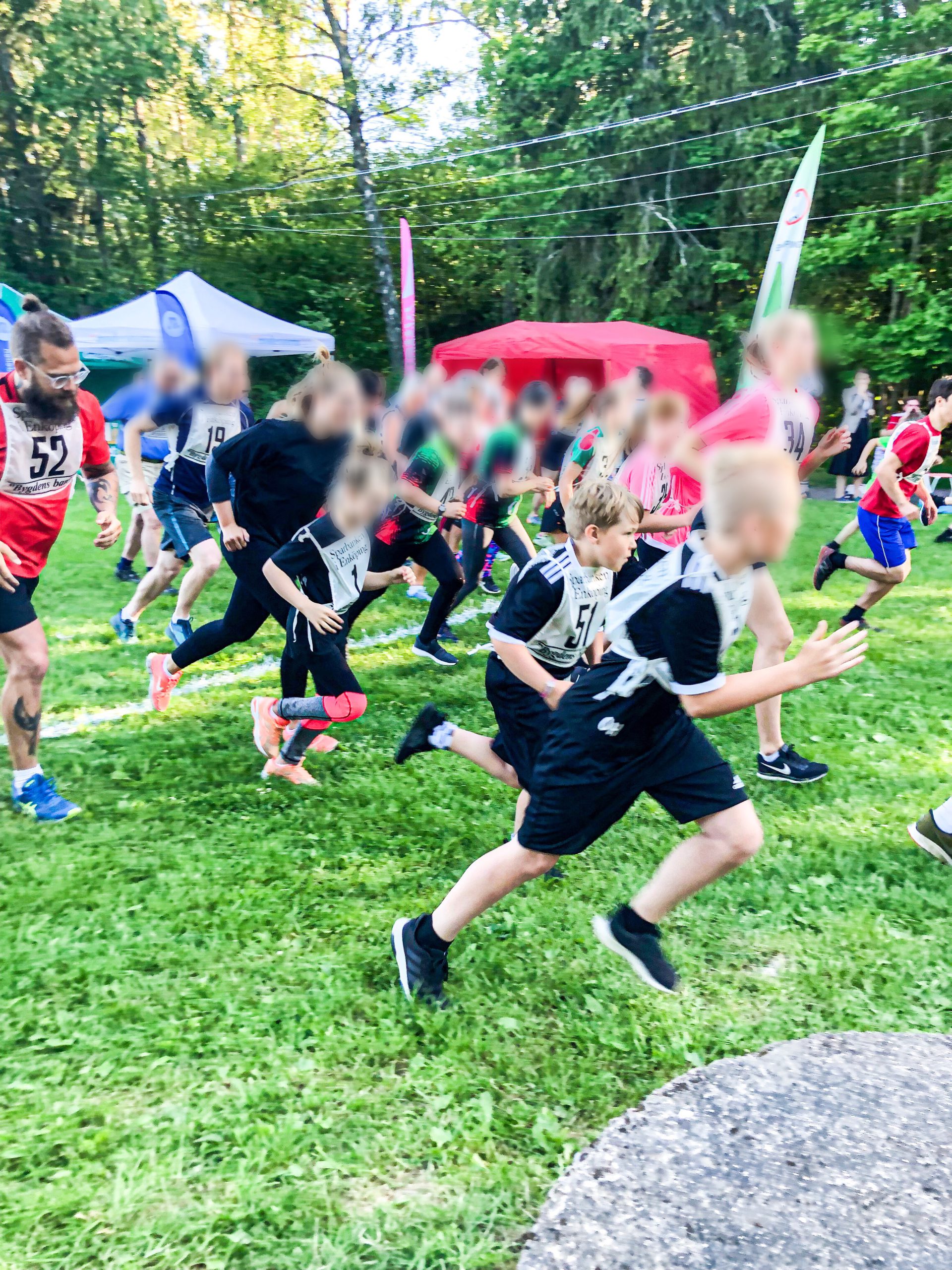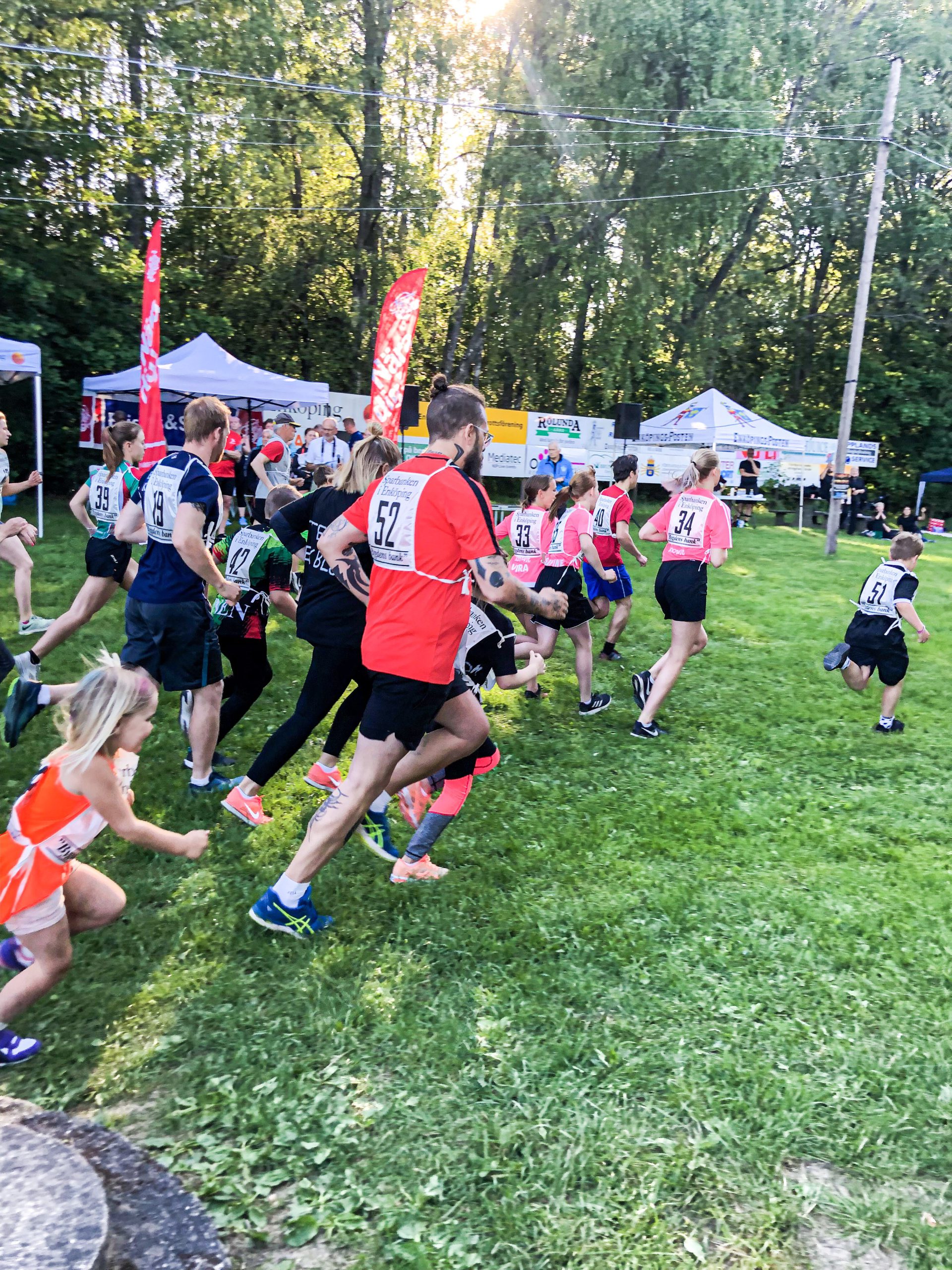 Igår gick midsommarlunken av stapeln, en mysig liten tillställning där man får springa en 2,2 km runda så många gånger man hinner på 30 min. Milo och Tony var anmälda, jag med men min k*krygg ville inte.