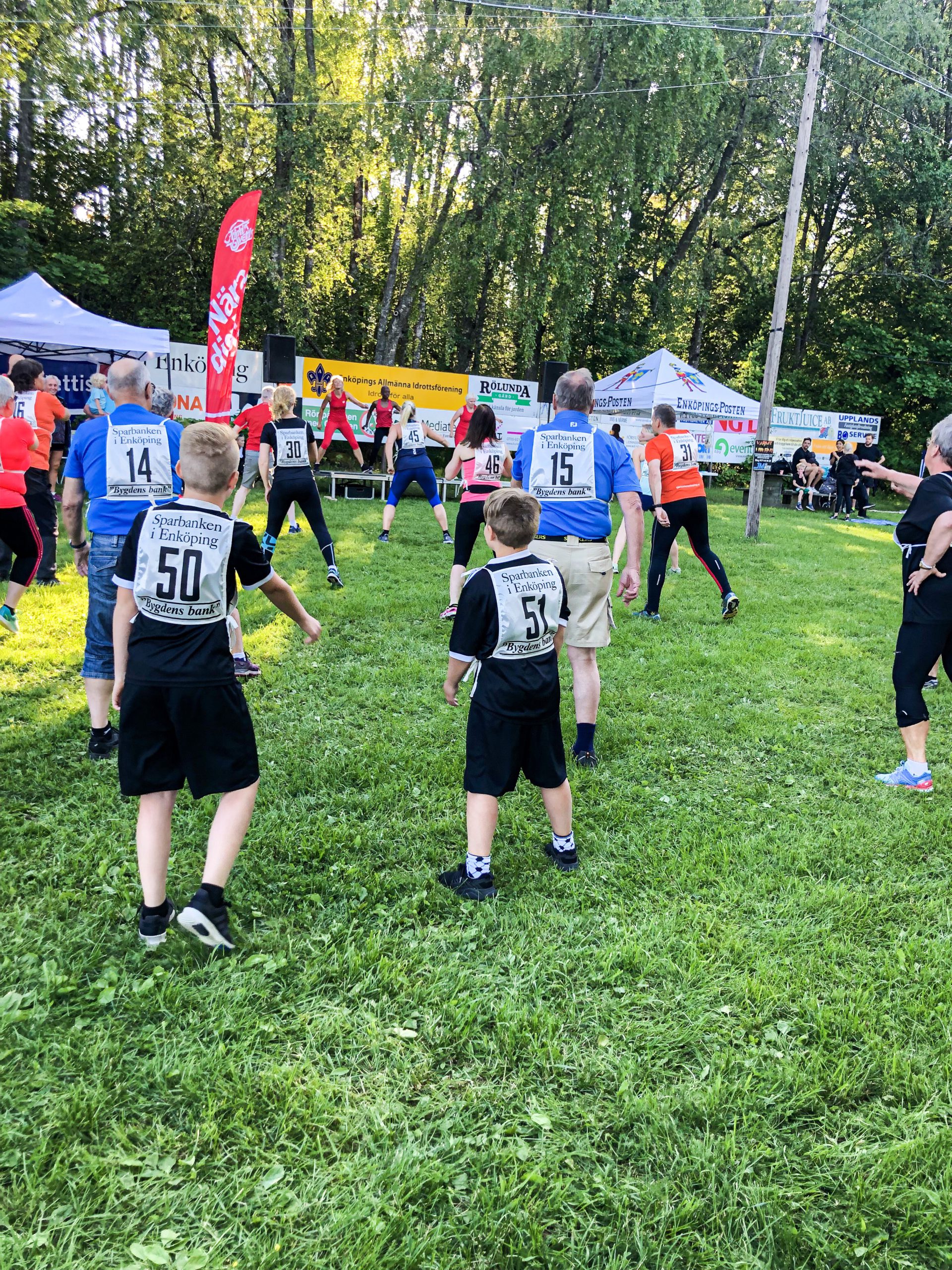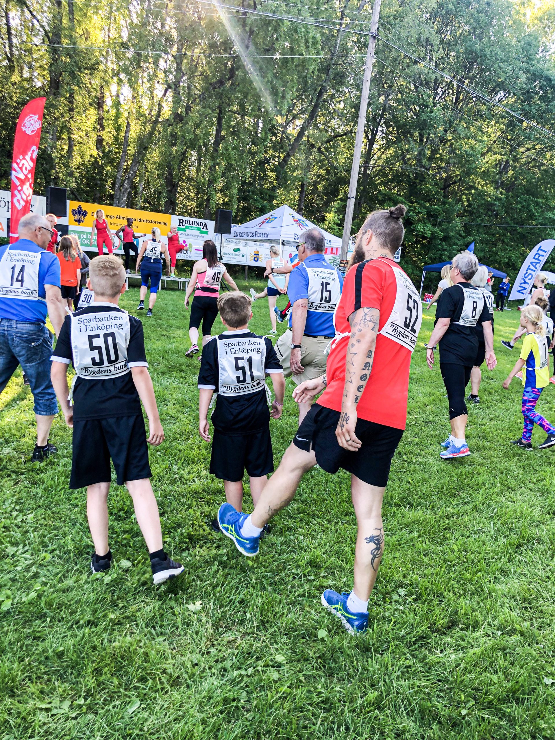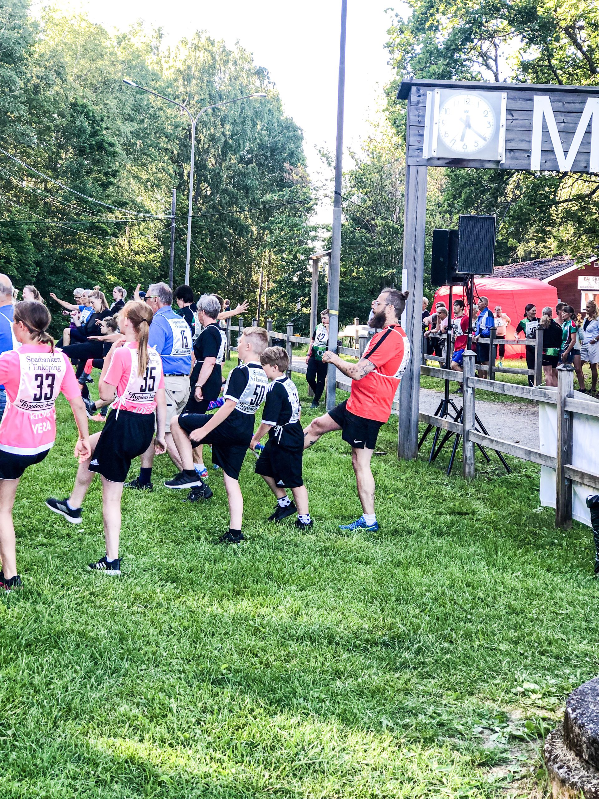Det kördes Friskis & Svettis uppvärmning inför starterna. Fick skratta gott åt Tonys koordination. Han gjorde det faktiskt riktigt bra måste jag säga, kanske har han lite moves där under träningströjan.