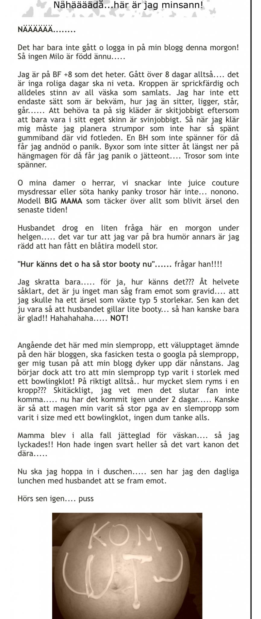 1. I KNOOOOOW! Jag hade rekord på varje mätning, den var hemsk. Å den har inte gått ner än….. hahaha! Tack fina du!