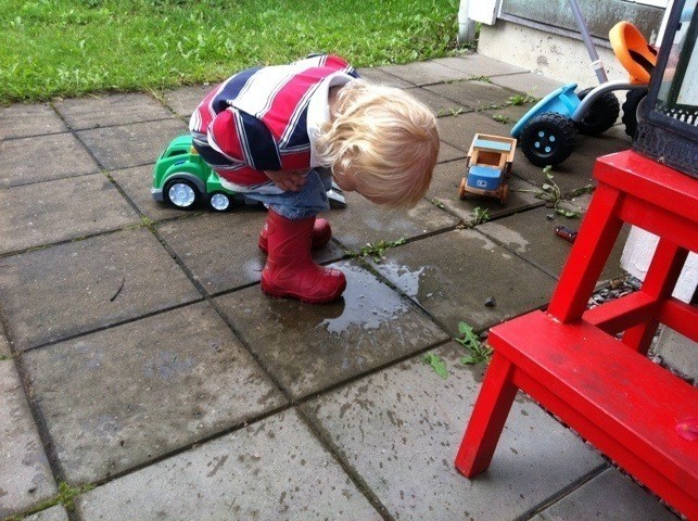 Dom här bilderna tog jag i fredags när han lallade runt i sina favvo gummistövlar.