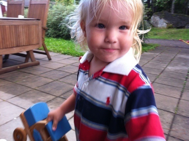Så, nu är vi hemma. Jag har slängt in en rättikagratäng i ugnen och Milo har lekt ute på gården. Tänk vad enkelt det är när det finns en gård att leka på. Tänker på när vi bodde mitt inne i smeten med honom. Snacka om att vi vallade runt i vagnen med honom.