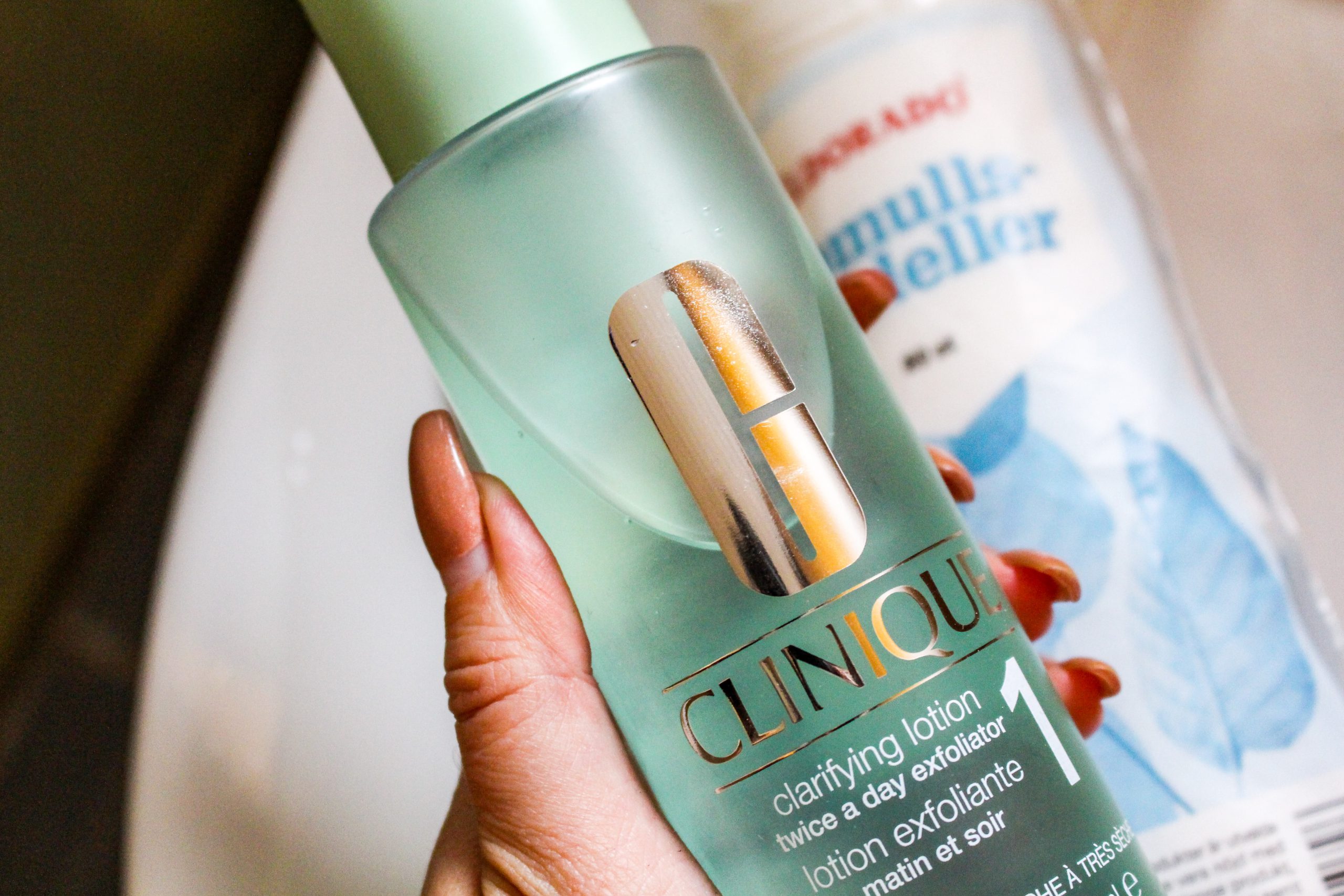 Sedan är det dags att lugna huden. Det är en påfrestning för huden att bli tvättad och scrubbad, man behöver också rengöra huden från rengöringsmedel samt rester av de döda hudcellerna som ligger kvar samt så förbereder den huden för fukt. Ansiktsvatten är något som många slarvar med vilket är synd, det är nämligen en viktig del i att ha fin hud. Jag använder en från Clinique, den heter >>Clarifying lotion.<<