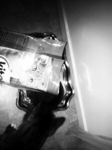Katten vill ut efter den ätit. Här står jag alltid halvnaken och balanserar så ingen av grannarna ska se in. 🙂