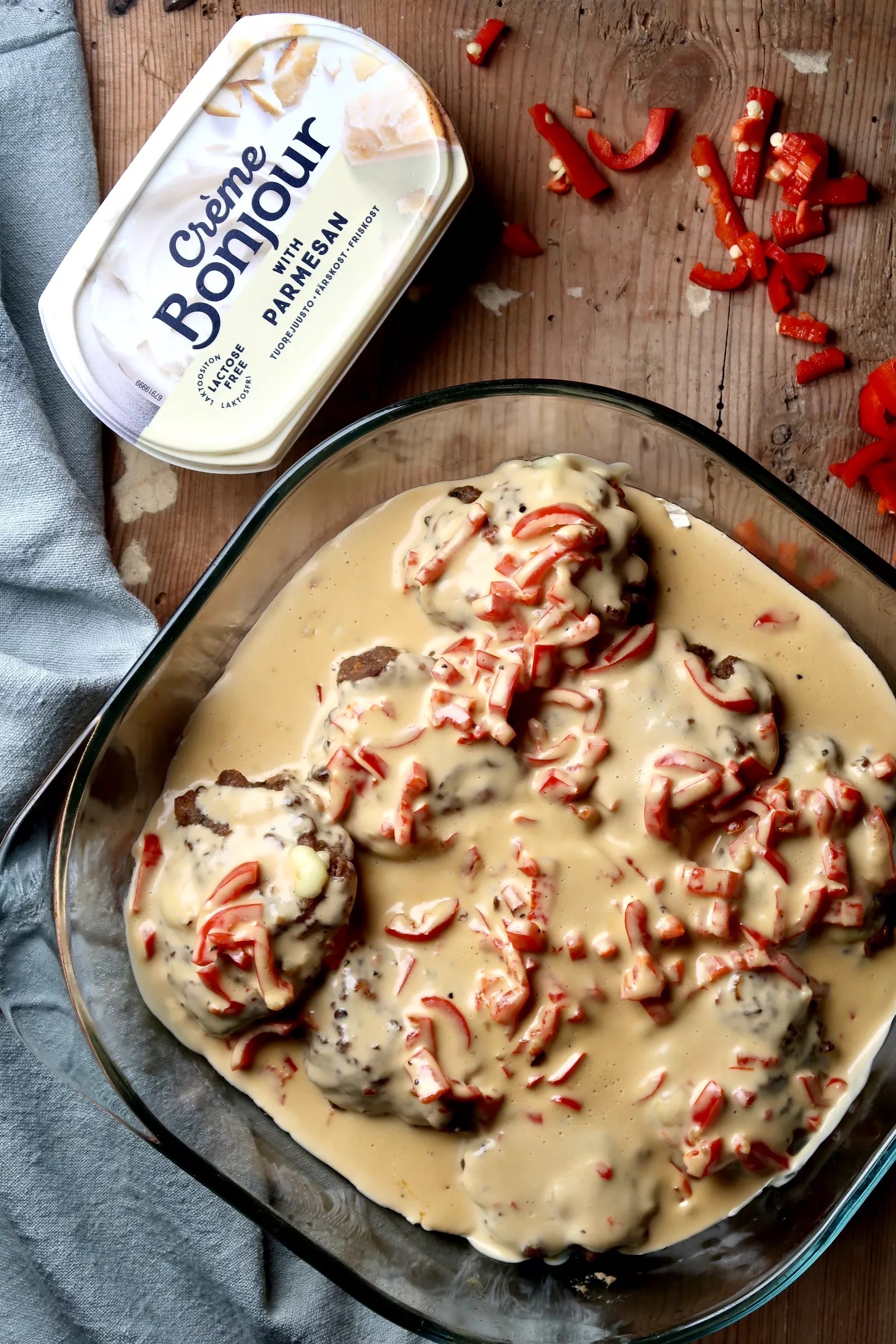 OST & BACONFYLLDA KÖTTFÄRSBIFFAR I PARMESANSÅS (<klicka)