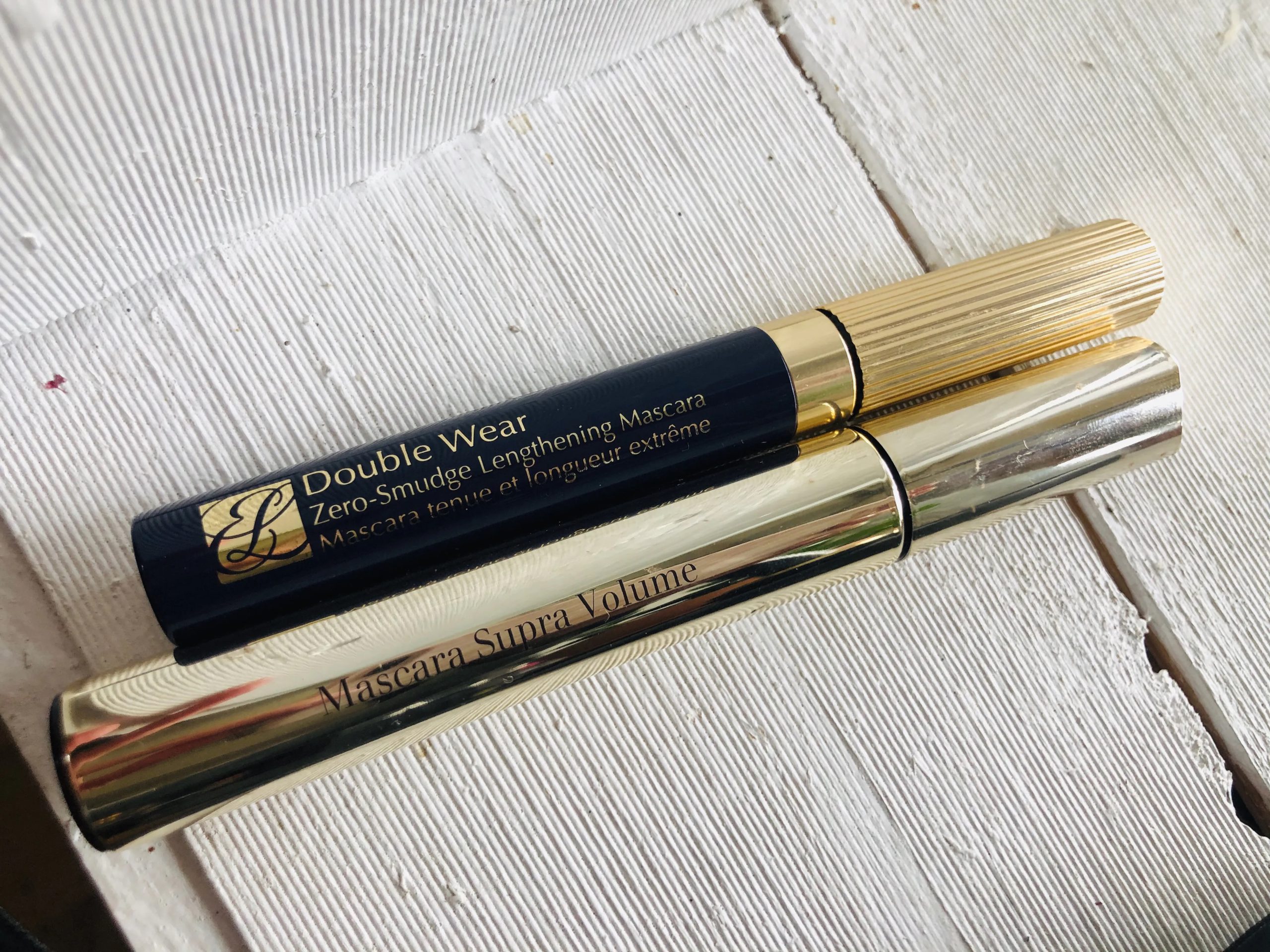 CLARINS Mascara Supra Volume & ESTEE LAUDER Zero-Smudge Lenghtening mascara (Just nu får du en lyxig necessär med produkter på köpet när du handlar för minst 800 kr från Estée Lauder. Necessären innehåller ansiktskräm och ögonkräm i serien Revitalising Supreme+, samt ett läppstift i färgen Rebellious).
