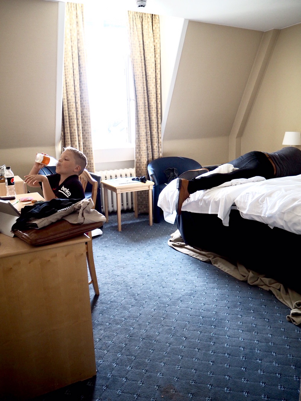 Sen körde vi häng på rummet. Tony somnade om med skor på sig och allt.