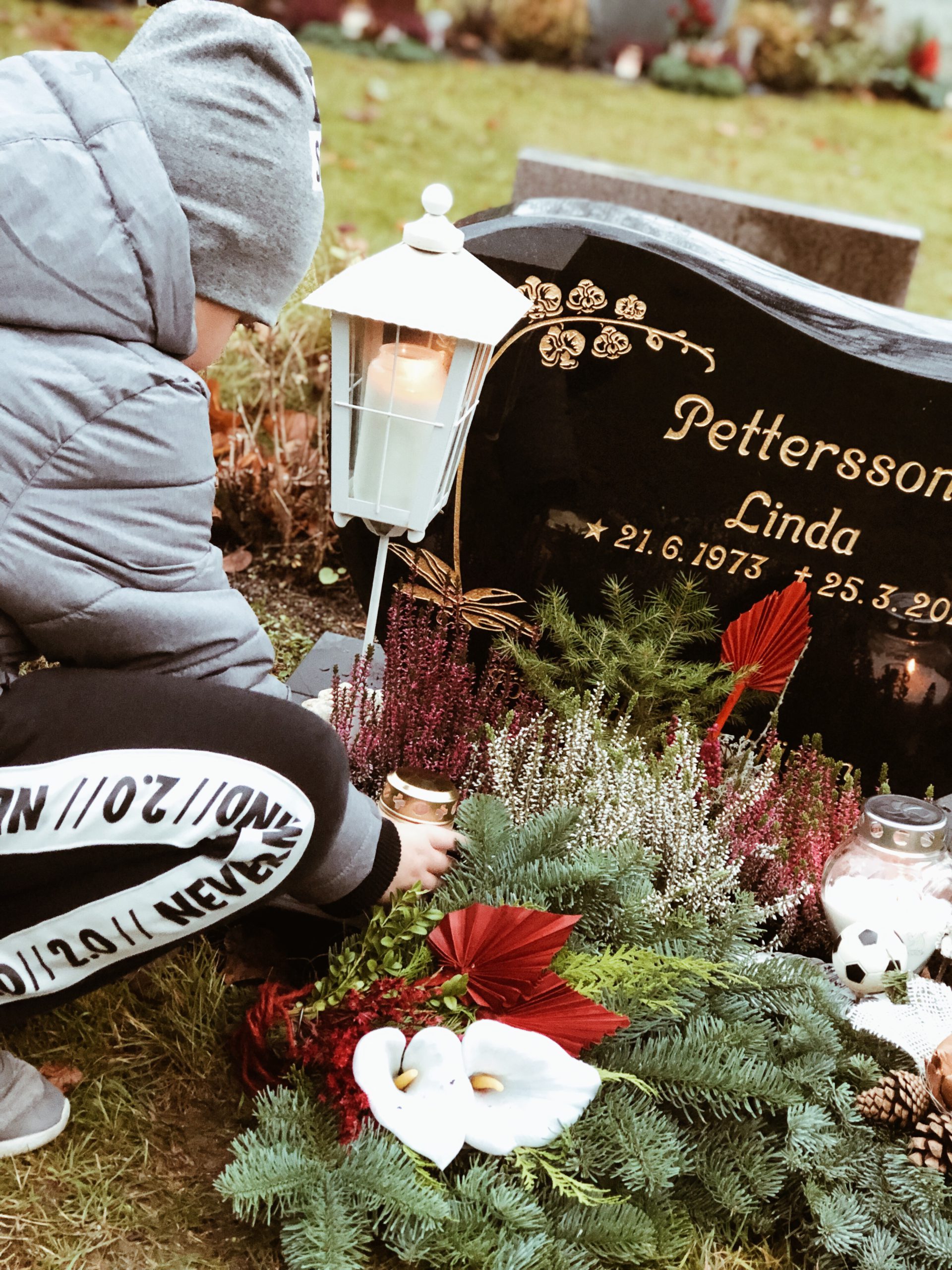 Milo tyckte det var lite obehagligt innan vi åkte iväg, begravningsplatser är otäckt tycker han. Men medan vi gick där och han fick se alla människor som var där och gjorde fint så tyckte han till slut om det. Tyckte det var mysigt att gå runt och kika. Döden är obehaglig men det är ju som det är med den. Så för mig är det viktigt att våga nudda vid den också och försöka hitta ett sätt att se på den.