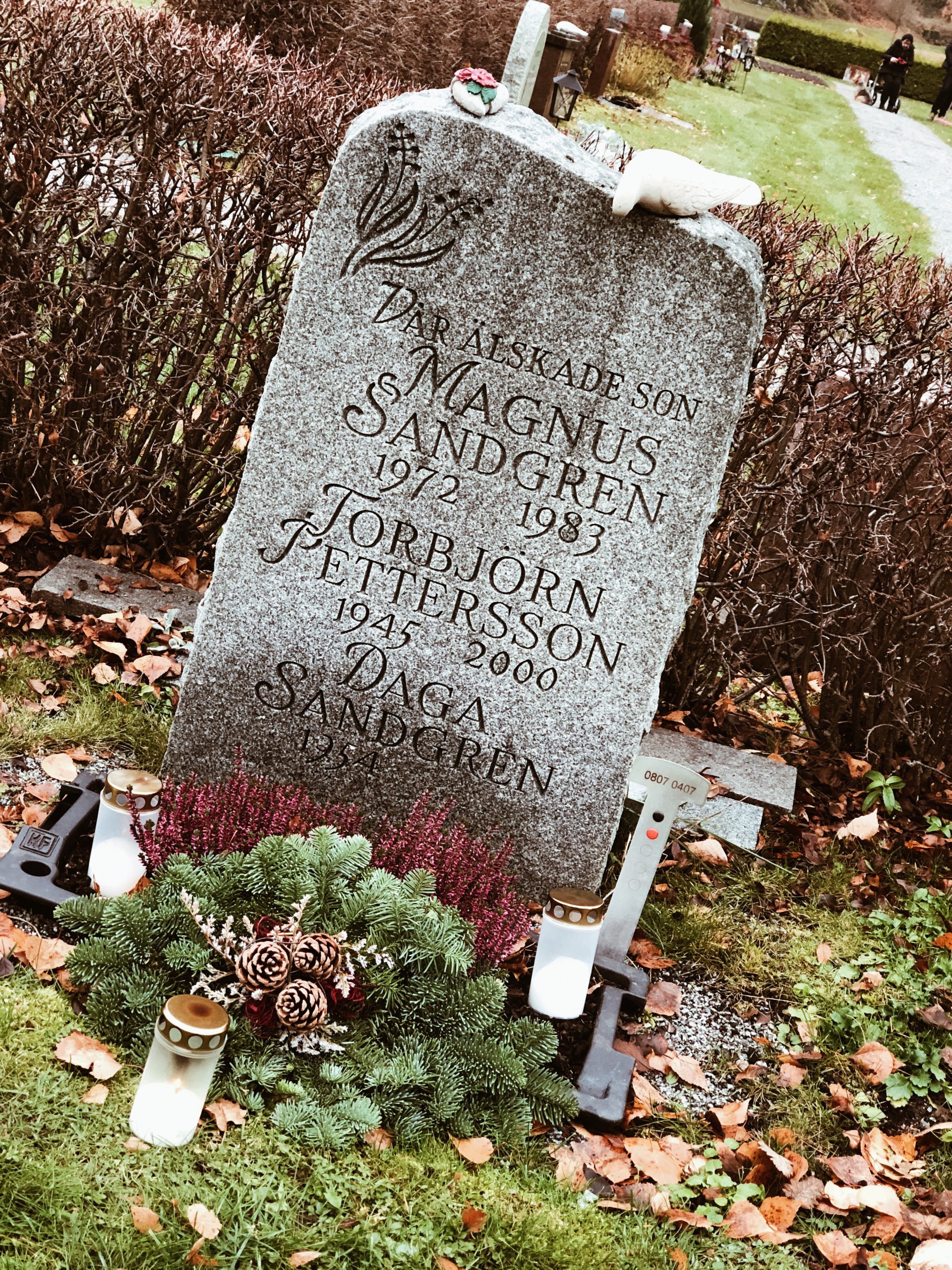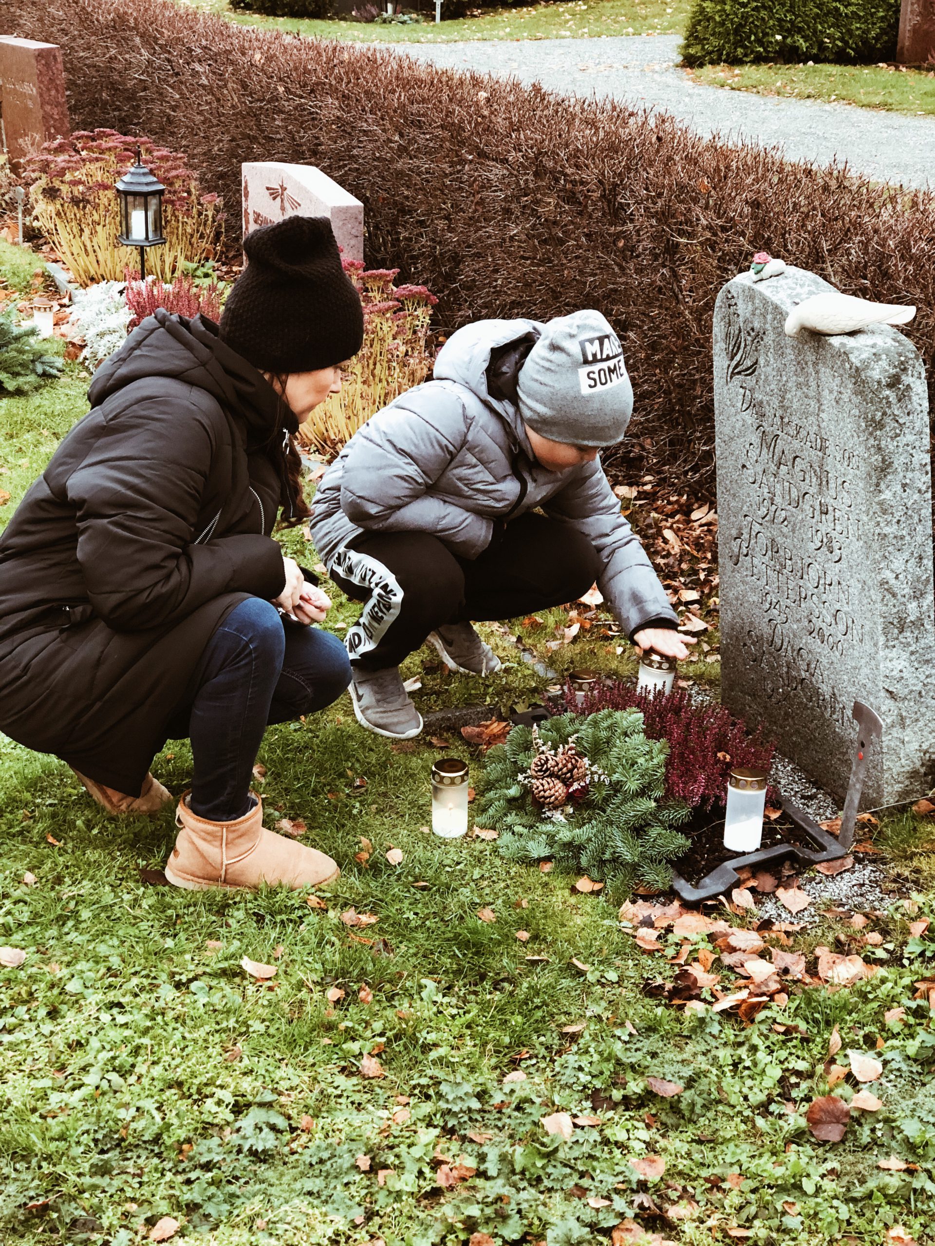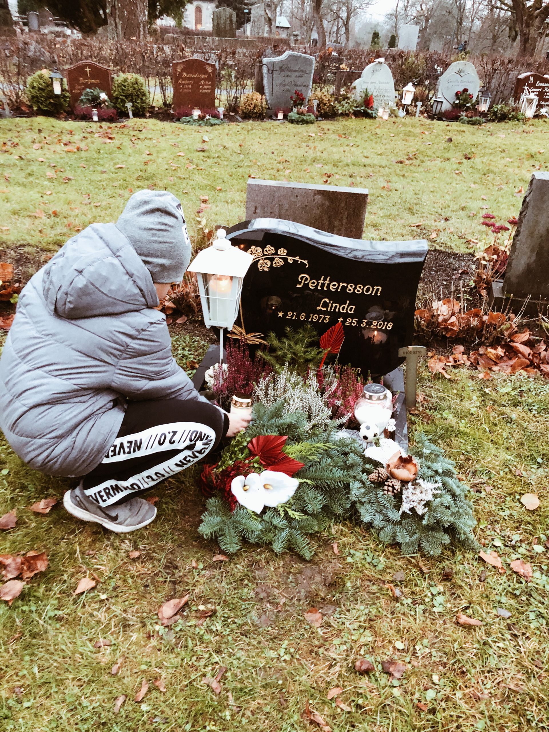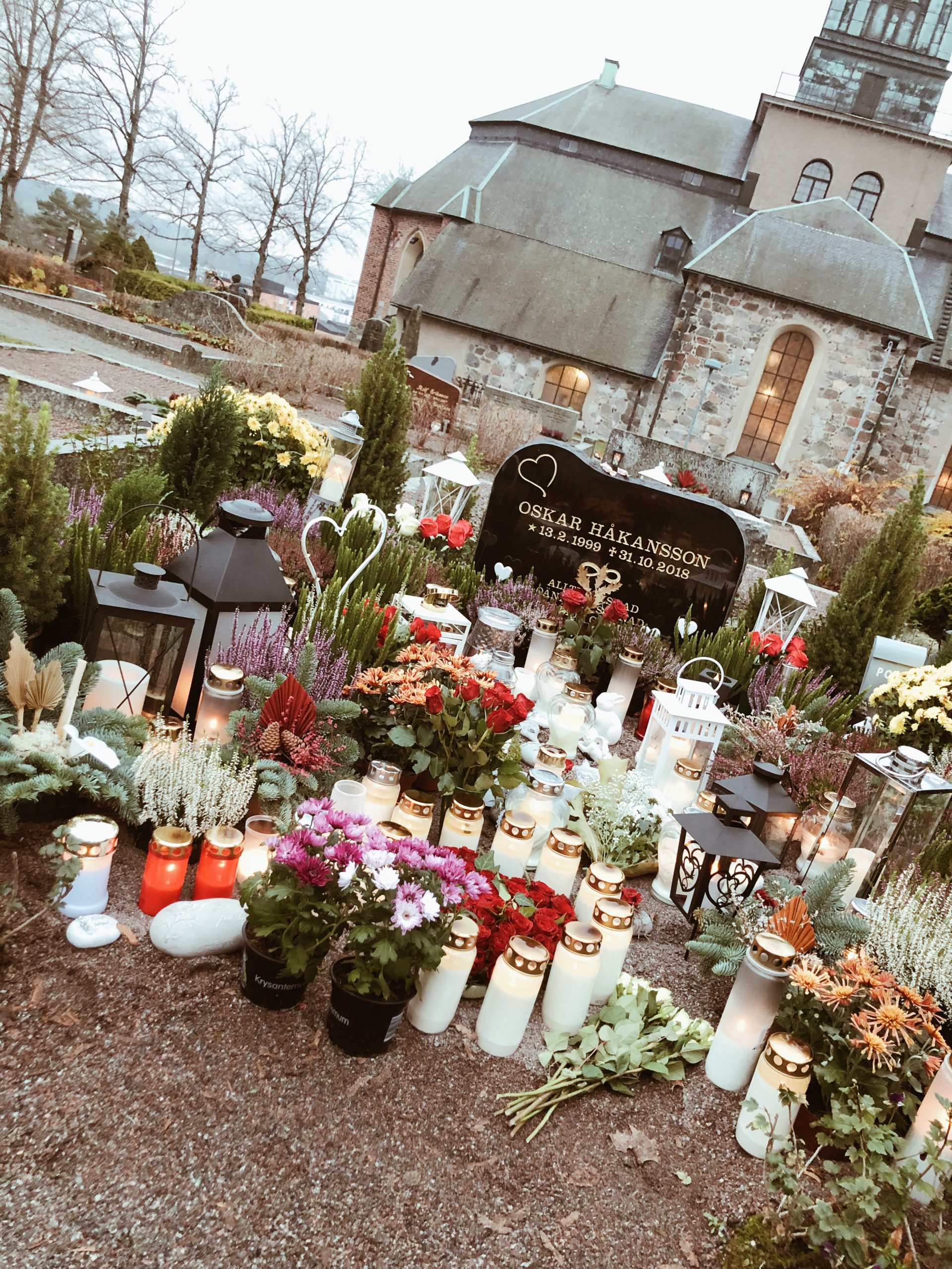 Igår var vi och la ljus på några gravar. Magnus, min klasskamrat som dog när han var 11 år och Linda, min innebandykollega bl a. En kille som ”Mellan” kände till gick bort för drygt ett år sedan hade ett otroligt hav av blommor och ljus på sin grav, helt otroligt.