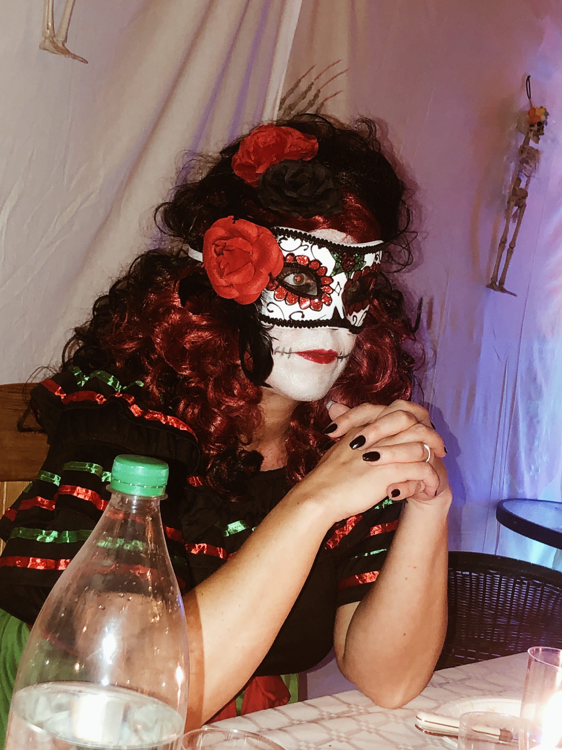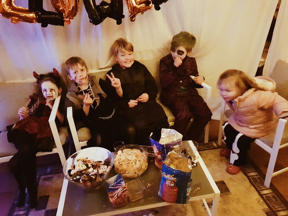 Alla var utklädda, gammal som ung! Milos mask fick inte vara på så länge då han såg så dåligt med den tyckte han.