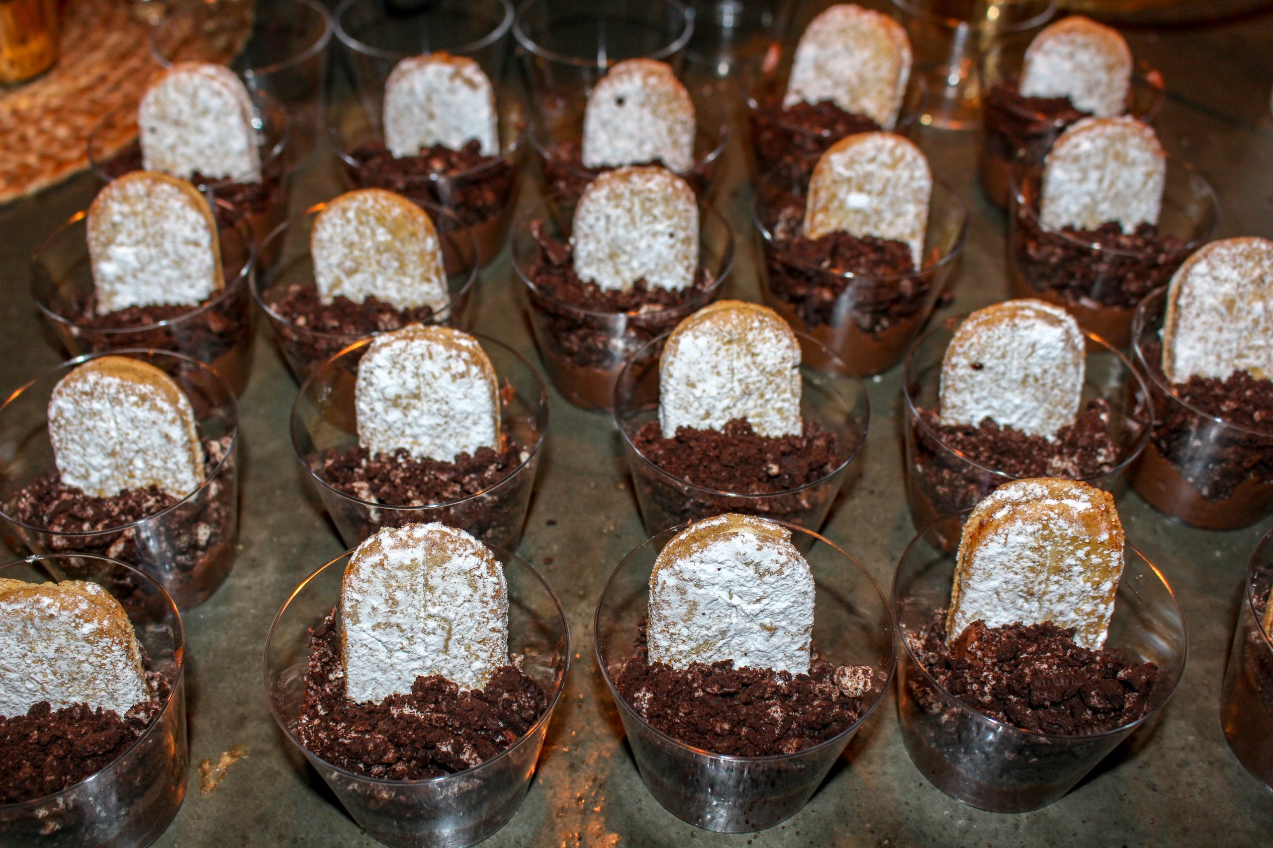 Sedan var det dags att åka hem och förbereda efterrätten som vi skulle stå för. Igår kväll var det nämligen dags för Halloweenkalas hos Tonys bror med familj. Jag gjorde chokladmousse med oreotäcke och kattlåda med ”kattbajs”.