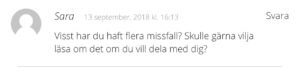 Så ärligt, sorgligt, fint skrivet. Blir alltid så berörd av att läsa om barnlöshet, missfall, kämpande o tårar kring barngörande då det ligger mej så nära med måååånga år av barnlöshet, missfall (”bara” 1 dock), att åka fram o tillbaka mellan hopp o förtvivlan om varför det inte går, om o om igen, år efter år. O när det efter många år äntligen går så slutar det i missfall.