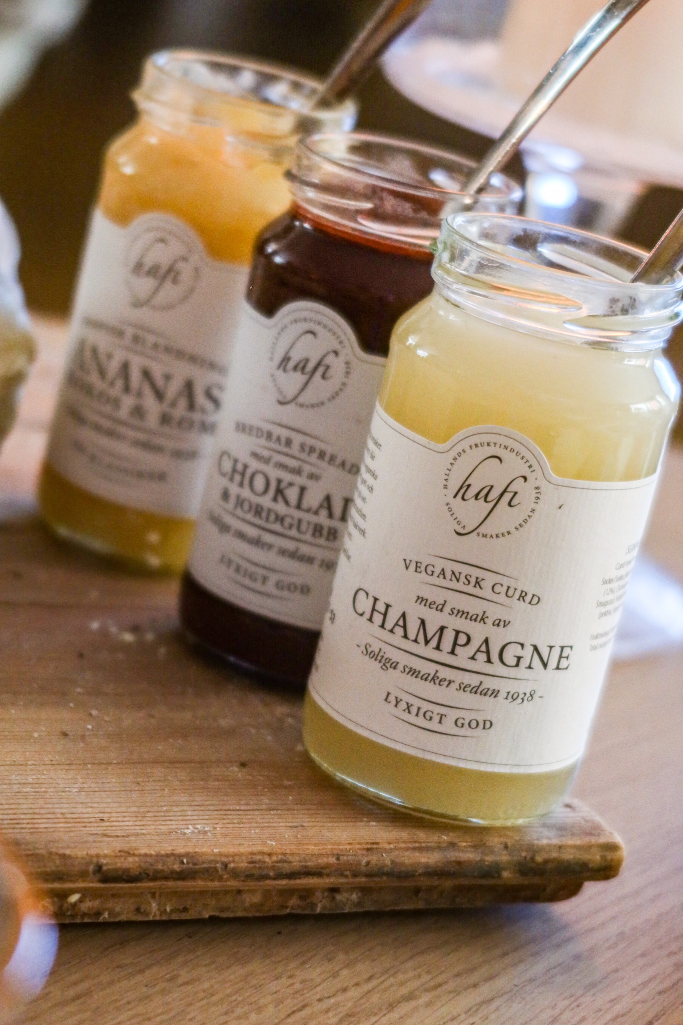 Mina ”all time favorite” marmelader från Hafi. Kolla in smakerna?! Dessa är lite svåra att få tag på vet jag, men det finns några återförsäljare. Jag vet att Tehuset Java (kolla HÄR) har några av sorterna, bla min favorit Ananas, Kokos och Rom. Som att dricka drinken piña colada fast på macka, haha….