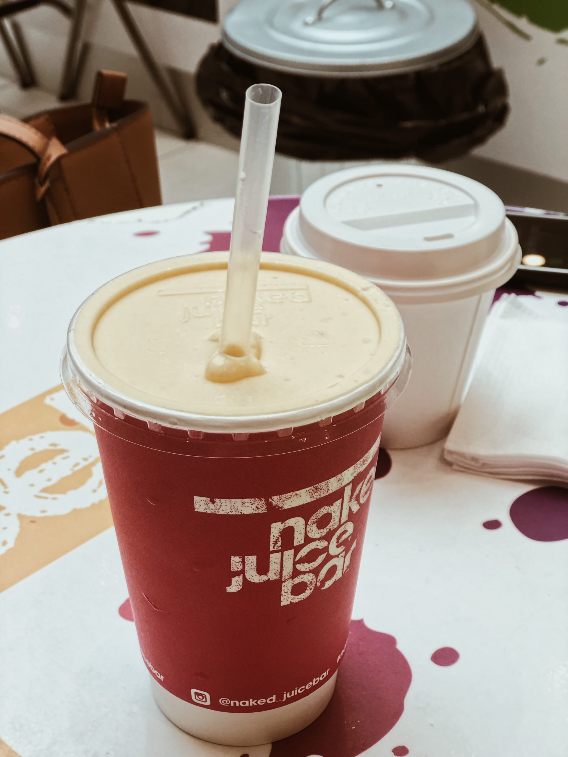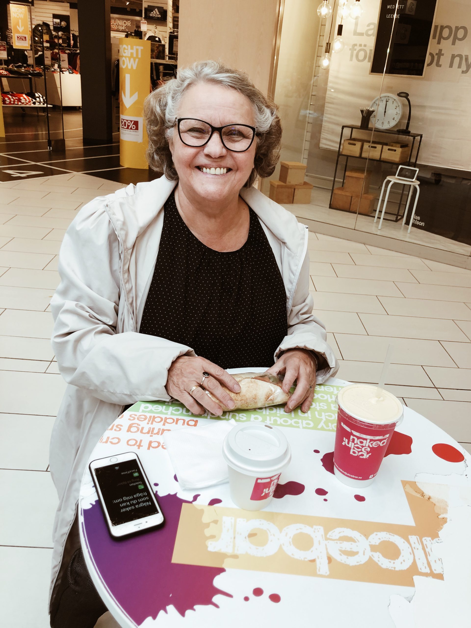 Det var mysigt att hänga med mamma idag. Vi behövde lägga tankarna på annat, då var det bra att åka iväg och fokusera på andra saker. Här tog vi en fika på naked juice bar. Jäkla bra för mig, kunde välja smoothie med ingredienser som jag kunde dricka. Jag är tokstrikt nu för att hjälpa magen maximalt. Äter absolut ingenting jag inte får.