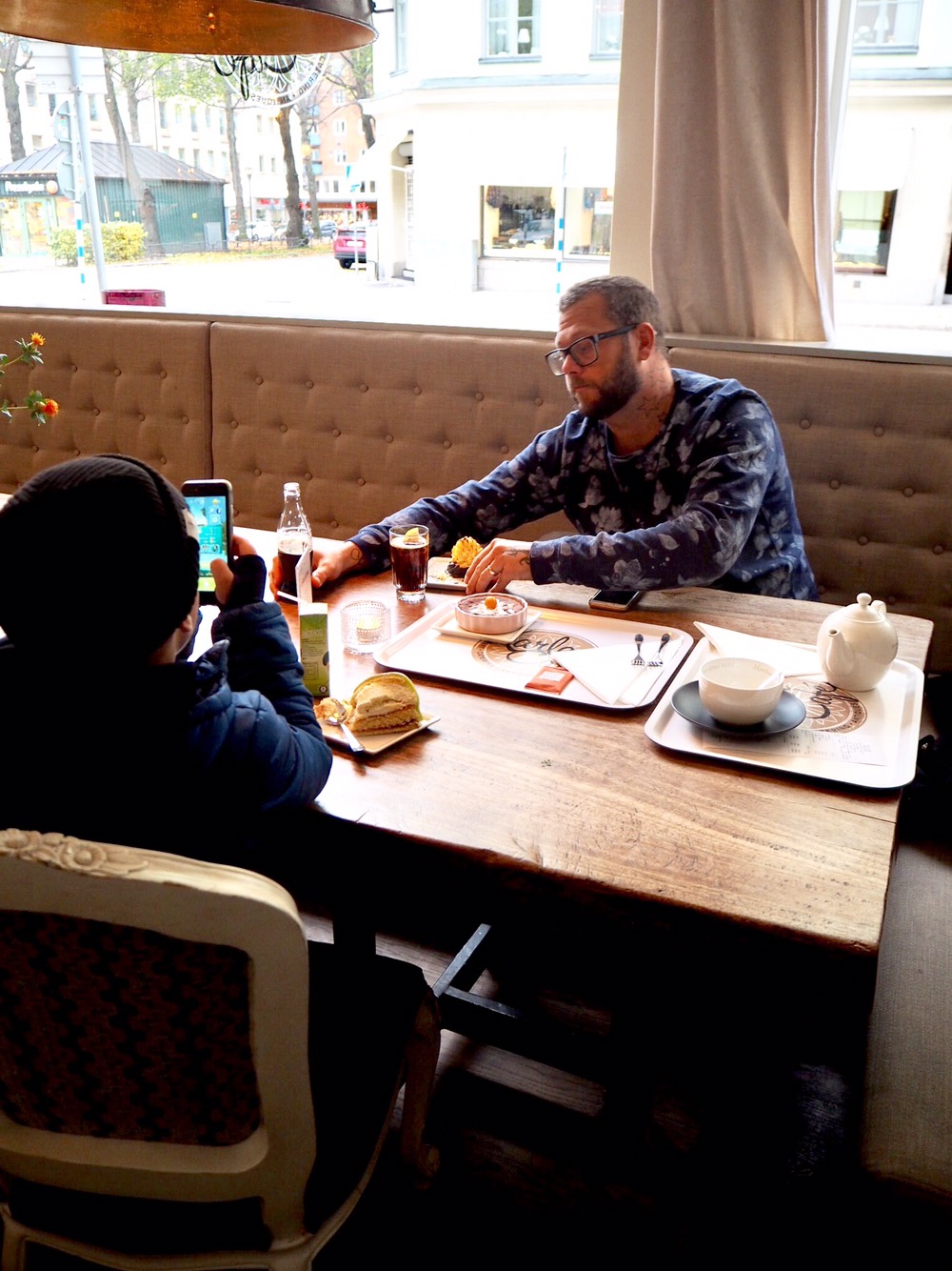 Tony valde kokostopp – han ÄÄÄÄÄÄLSKAR kokostopp och väljer det 9 ggr av 10 alltså. Jag gillar också det men tycker kanske det är lite vanligt och tråkigt när man är iväg på fincafe. Milo valde en prinsesstårta. Den däremot, det var en craving jag hade ibland när jag fortfarande åt gluten. Jag ÄÄÄÄÄÄLSKAR den tårtan alltså!