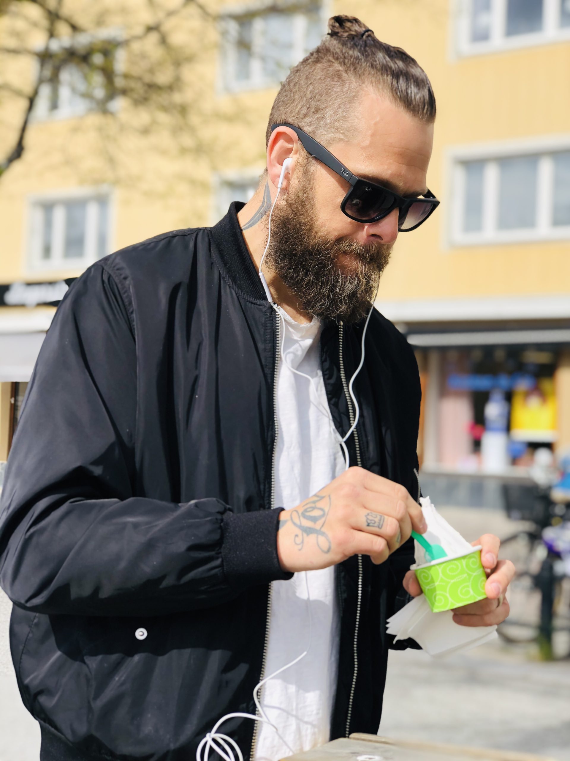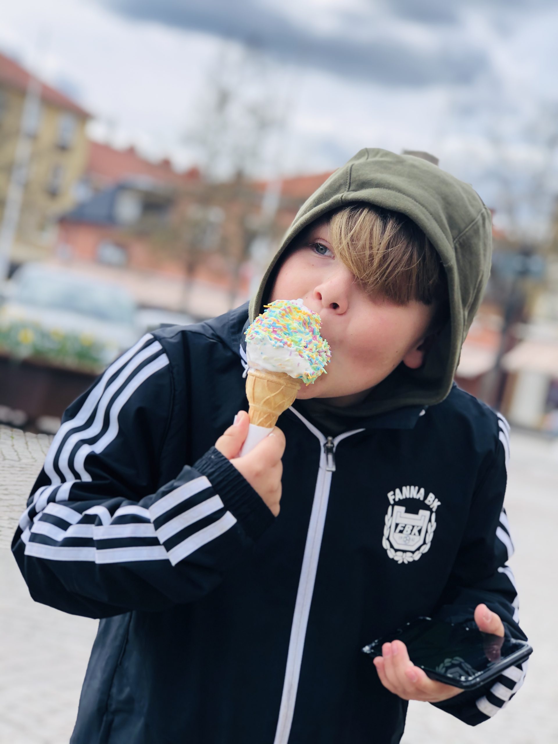 På eftermiddagen åkte vi till torget och ”glassade” oss. Här i väntan på att Tony skulle handla medan vi ”paxade” plats.