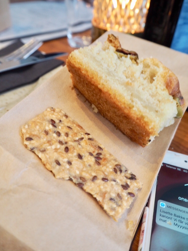 När vi kom fick vi en varsin påse med bröd i. Fröknäcke och mjukt bröd, kändes som focaccia ungefär. Milo smaskade i sig redan innan han fick av sig jackan.