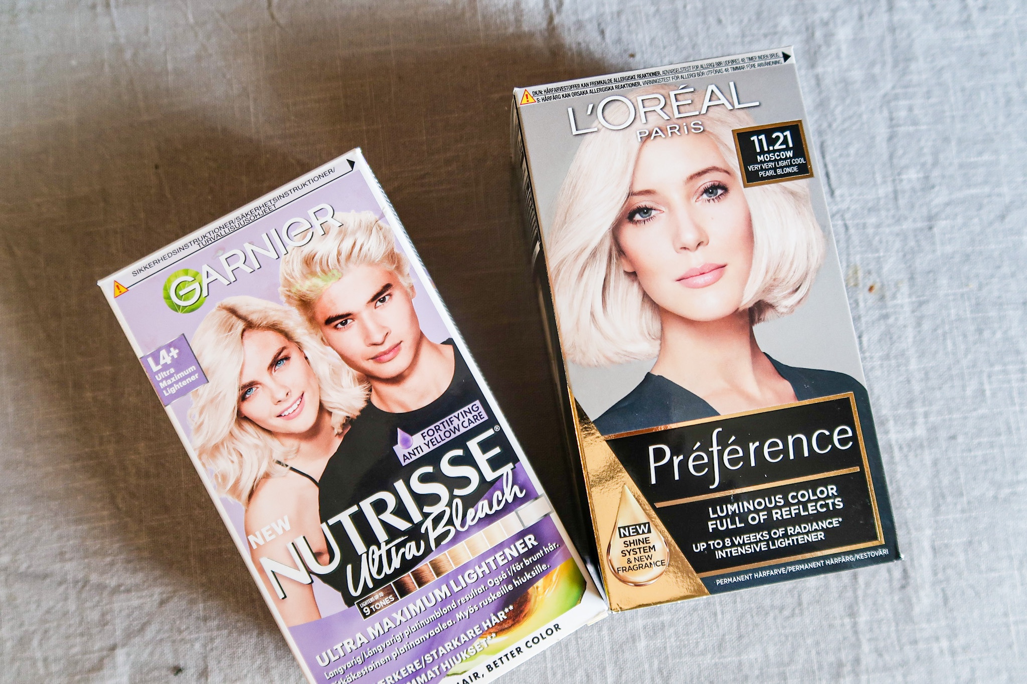 Vi började med blekningen från Garnier, finns HÄR. Lät det sitta i 45 min och då var det riktigt blekt men också rätt så gult. La sedan i en pärlblond nyans från Loreal, finns HÄR, lät den sitta i 30 min. Den tog nästan bort allt det gula, men inte riktigt.